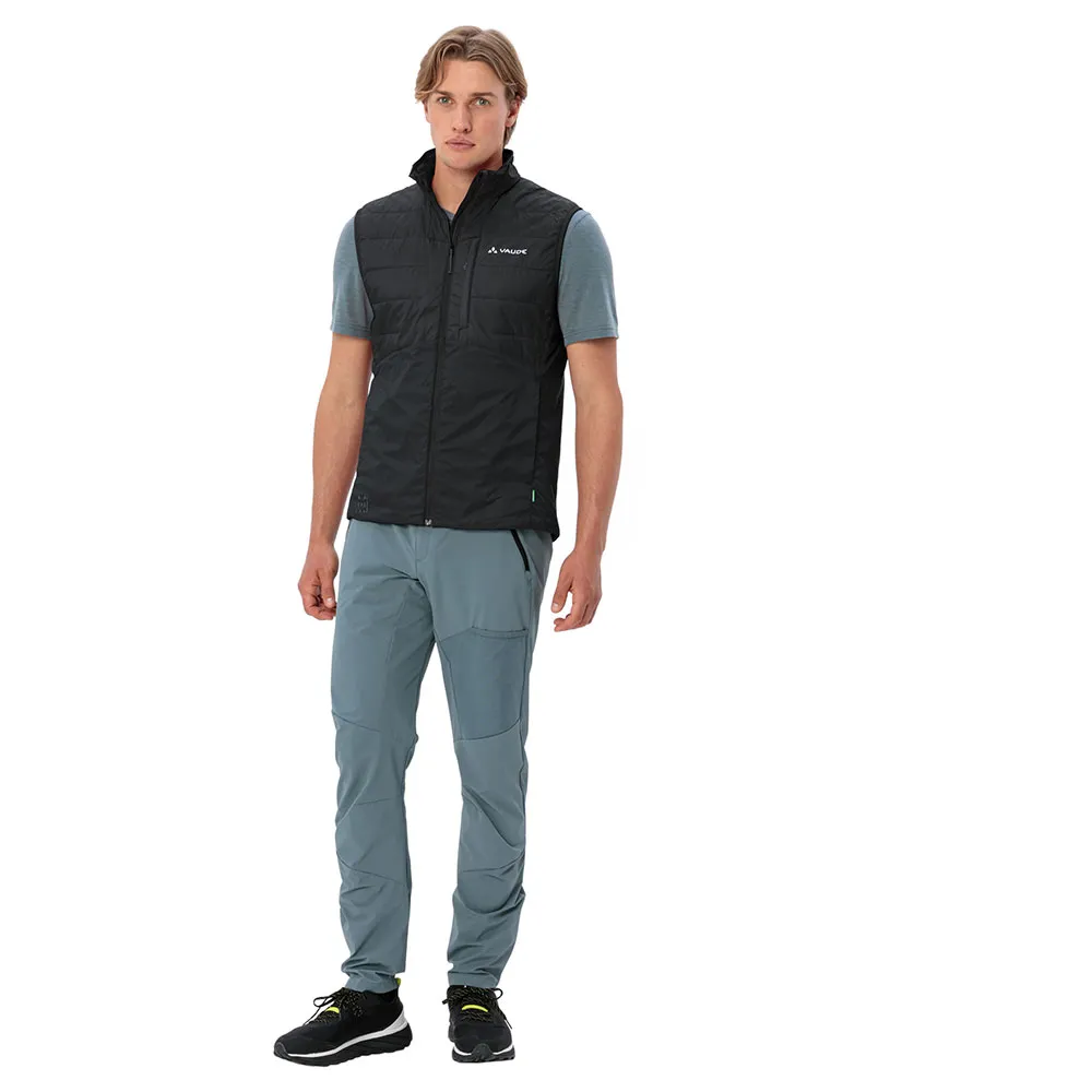 Если носить жилет отдельно, два передних кармана остаются легкодоступными даже при использовании скалолазной обвязки, а нагрудный карман позволяет держать телефон под рукой, защищая от холода.