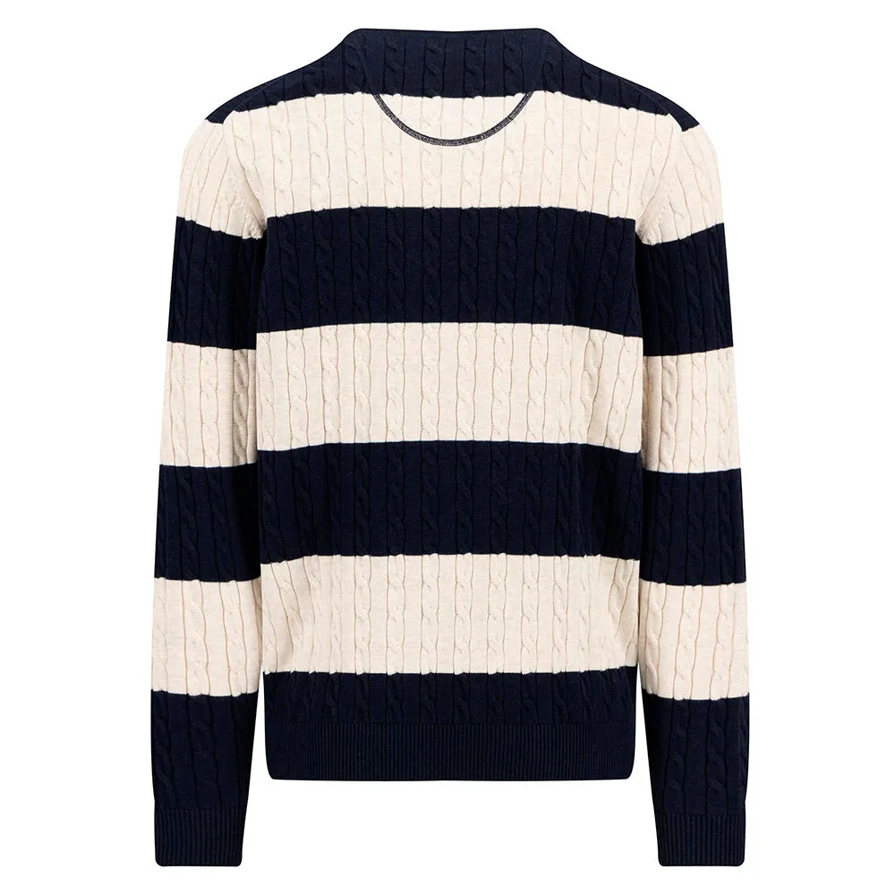 1412 225 (O-образный вырез, косы, полоски) Этот полосатый свитер с круглым вырезом и косами от Fynch-Hatton идеально сочетает в себе классический и современный стили.