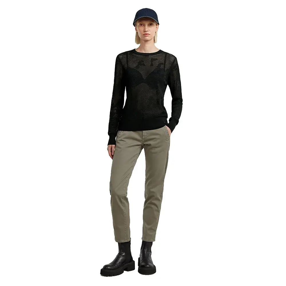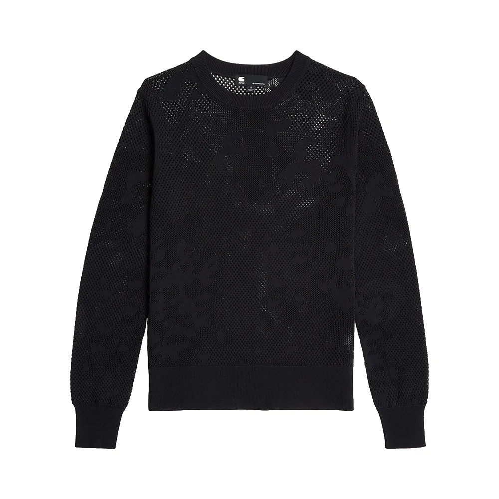 Вязаный свитер Pointelle имеет круглую горловину и длинные рукава, обеспечивая стандартную посадку с укороченной длиной.