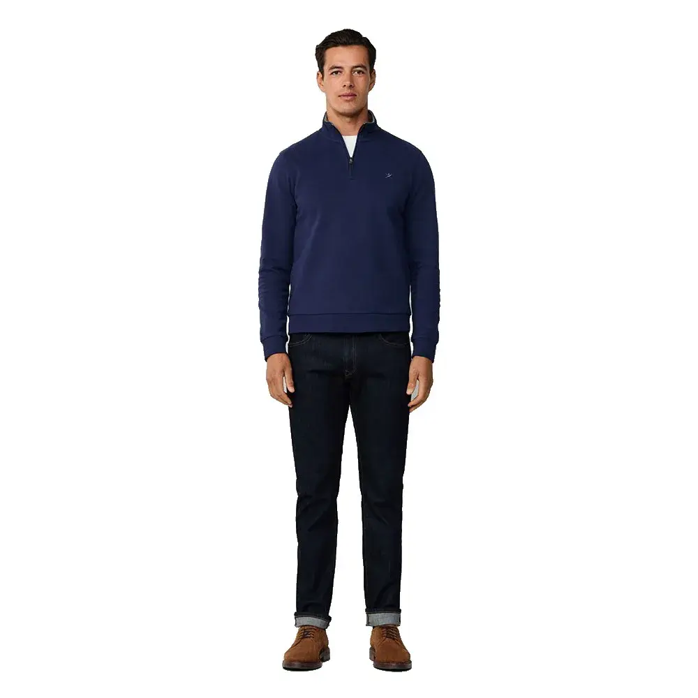 Свитшот с застежкой-молнией на половину длины, выполненный из мягкого двойного трикотажа с едва заметным брендингом и отделкой.