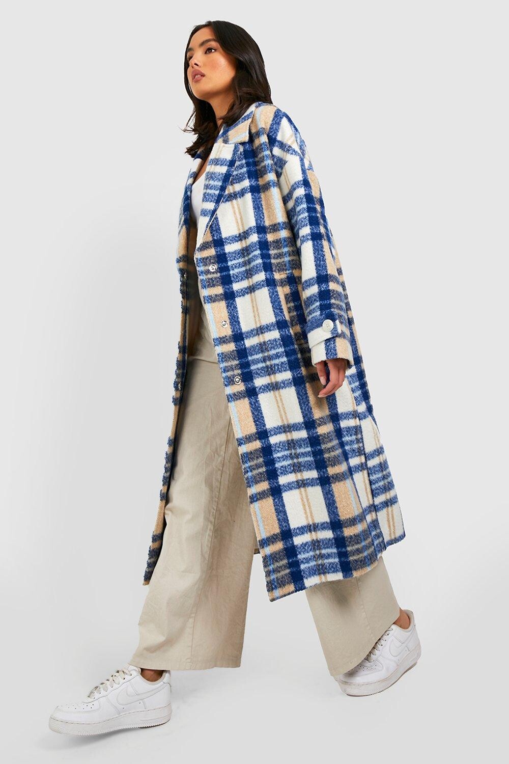 Пальто оверсайз фланелевый из шерсти Boohoo, синий