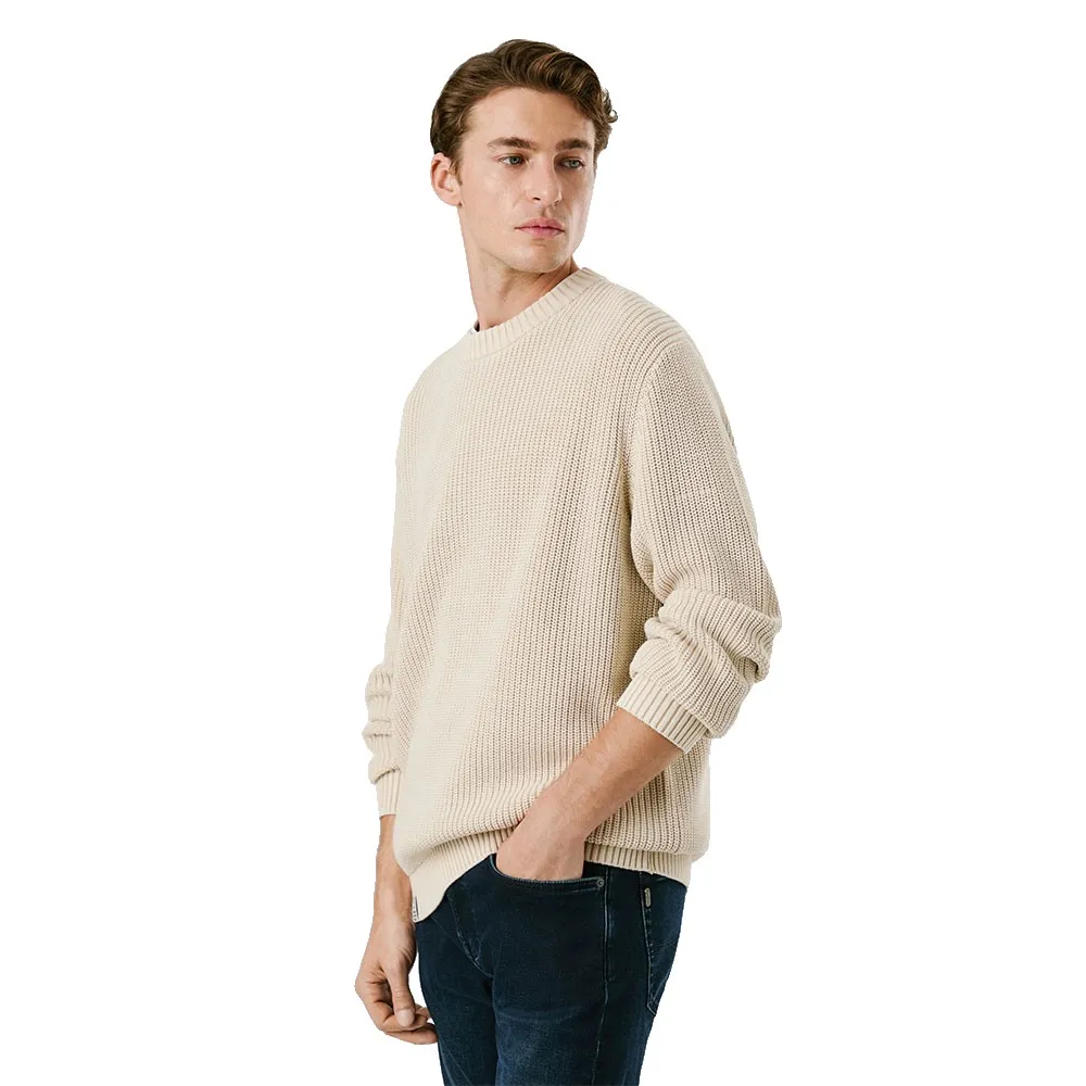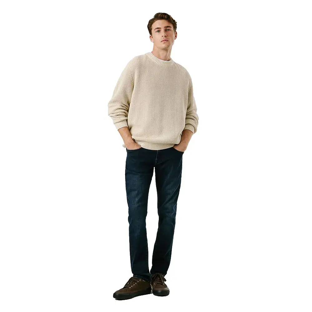 Джемпер с круглым вырезом из хлопка полукардигана 5 калибра, окрашенный в готовом виде, с тканой этикеткой на подоле.