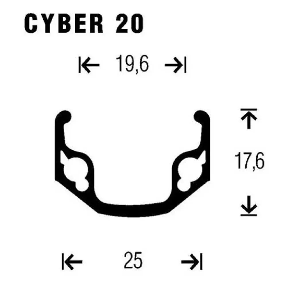 ОБОД: Алюминиевый обод с простой стенкой для тормозов V-brake, черного цвета, 36 отверстий, профиль 19,6 мм внутри, 25 мм снаружи и высота 17,6 мм.