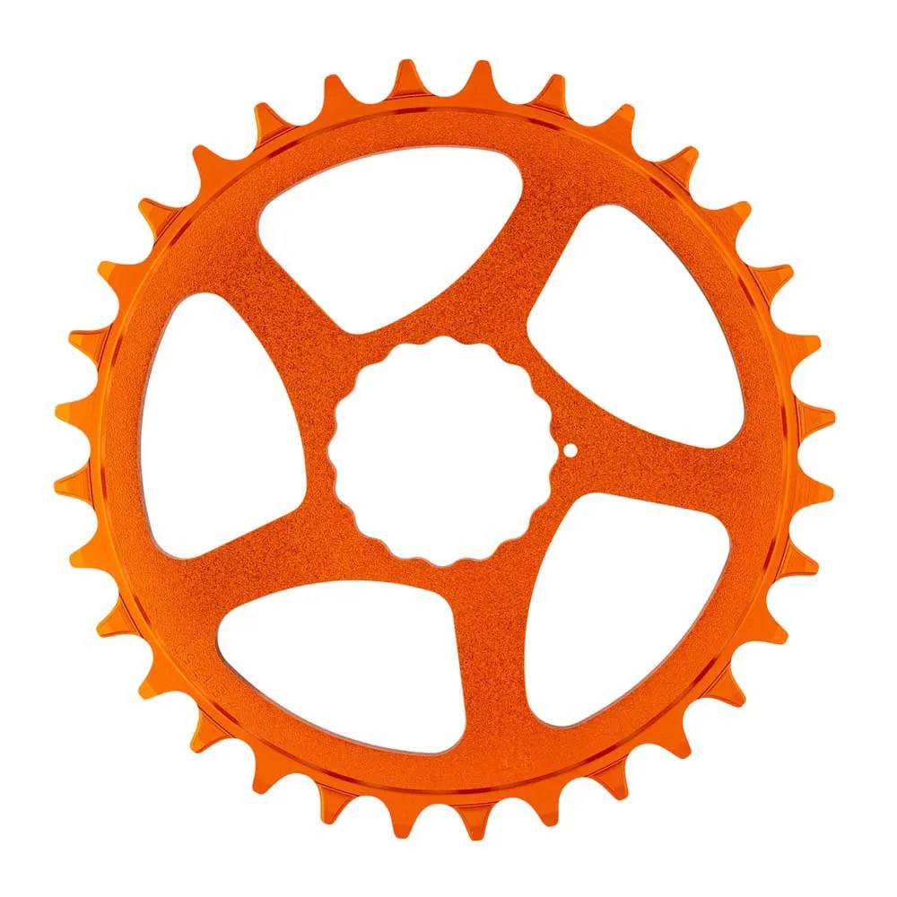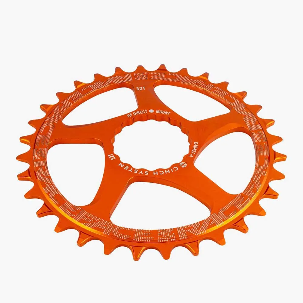 Узкий широкий профиль зубьев обеспечивает максимальное удержание цепи. Крепится как часть системы RF Cinch (с помощью стандартного инструмента для каретки Park BBT-22), что позволяет легко переключаться между звездами/пауками DM. Использует запатентованную конструкцию шлицев RF. Алюминий 7075-T6, прочность, применяемая в аэрокосмической отрасли. Жесткая пластина толщиной 4 мм обеспечивает передачу нагрузки без изгиба. Совместима с 9, 10, 11 и 12 скоростями.