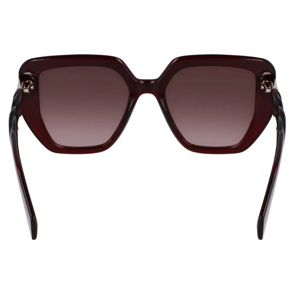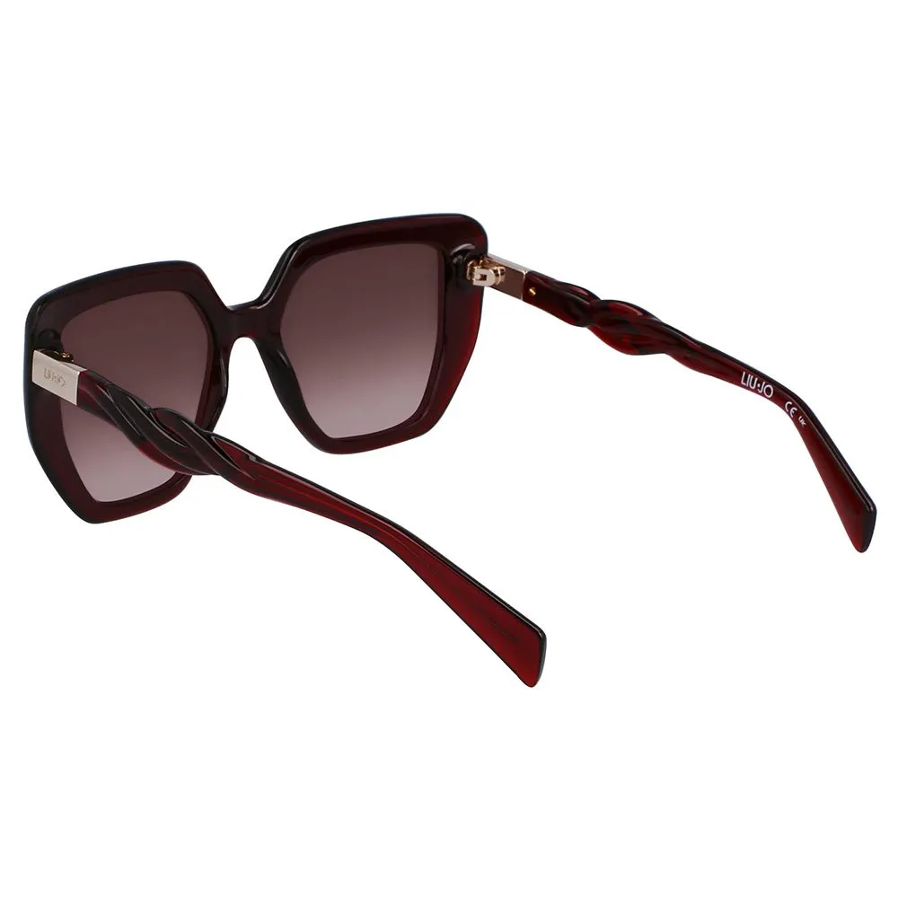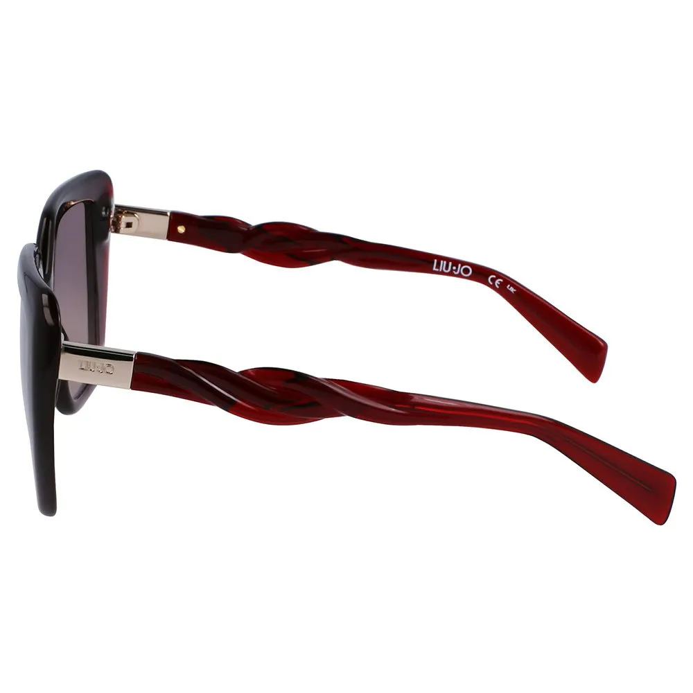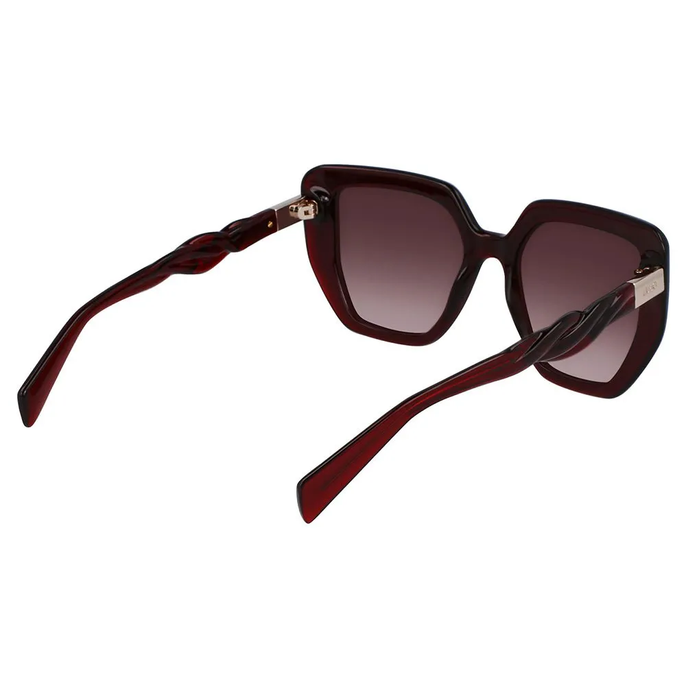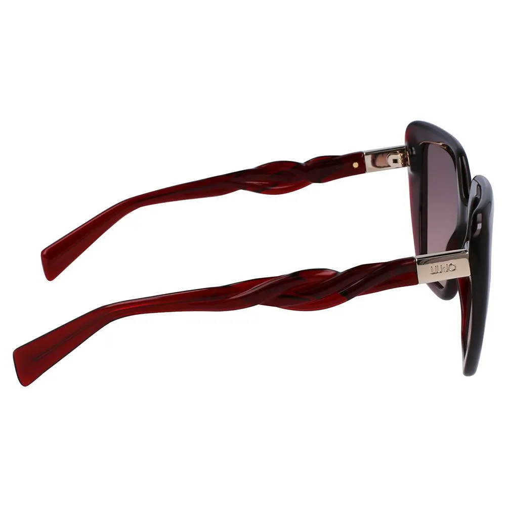 Элегантная бордовая оправа дополнена стильными золотыми акцентами и культовым логотипом LIU JO на заушниках. Круглая форма линз добавляет нотку ретро, а градиентные линзы обеспечивают 100% защиту от ультрафиолета.