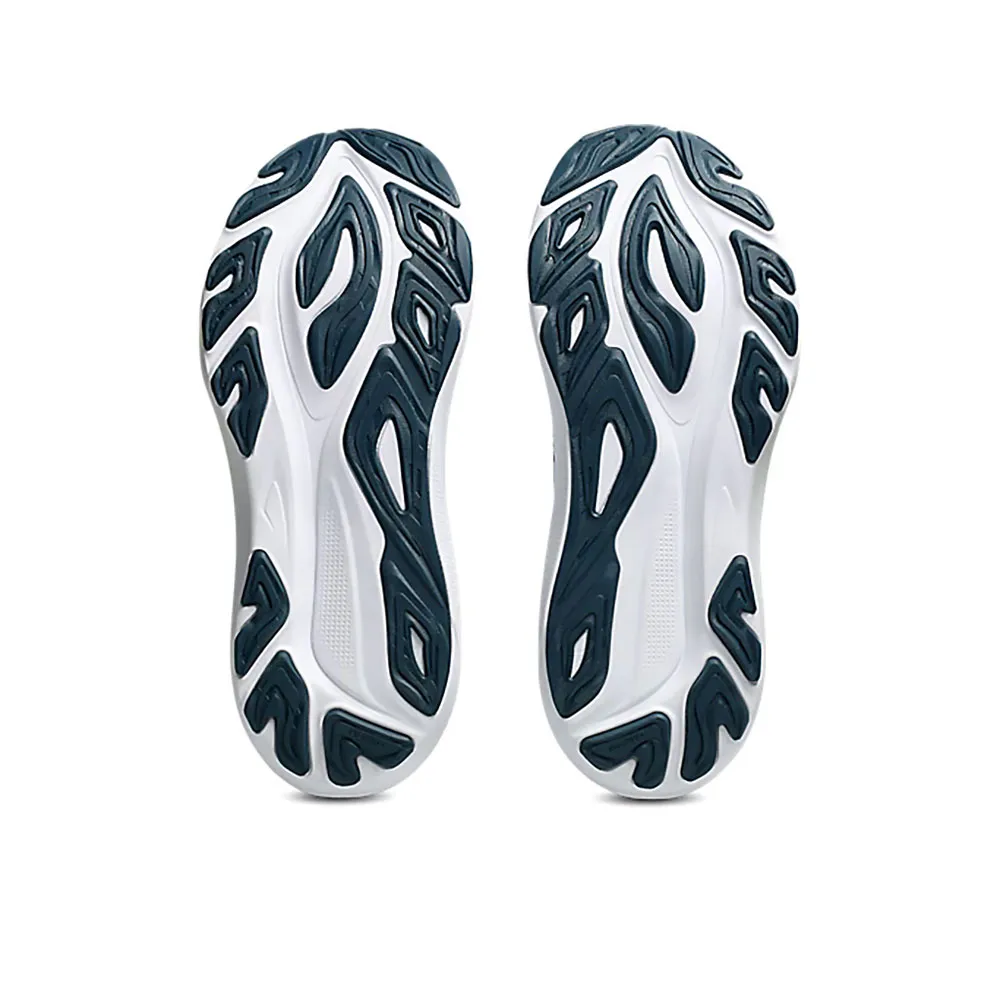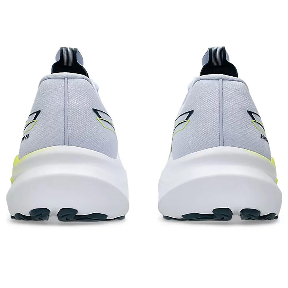 - Высокопрочная износостойкая резина ASICS, расположенная в области пятки, которая примерно в три раза прочнее стандартных резиновых подошв.