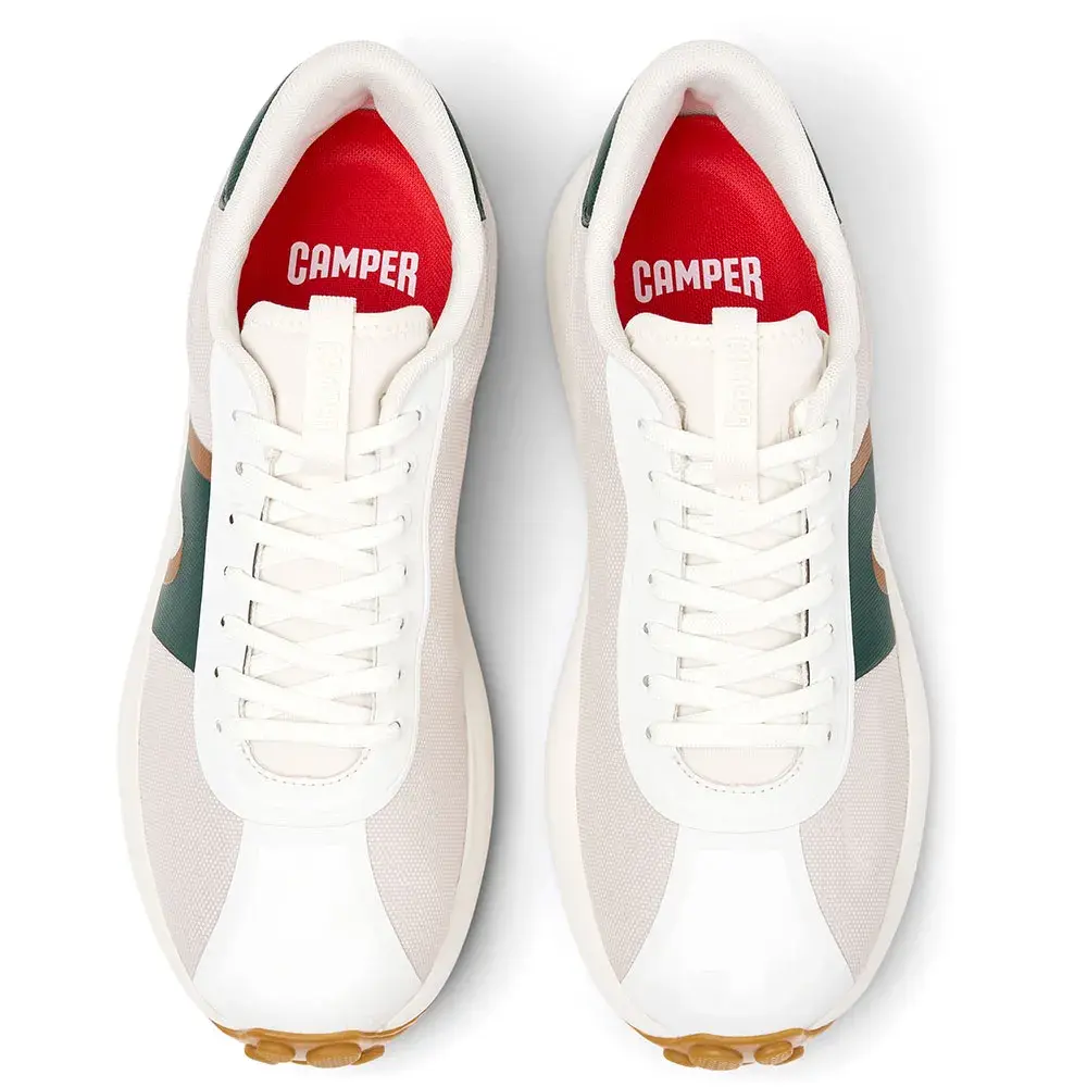 Мужские кроссовки из разноцветной переработанной пленки ПЭТ и ТПУ со стелькой OrthoLite Recycled, промежуточной подошвой из ЭВА и резиновой подошвой.
