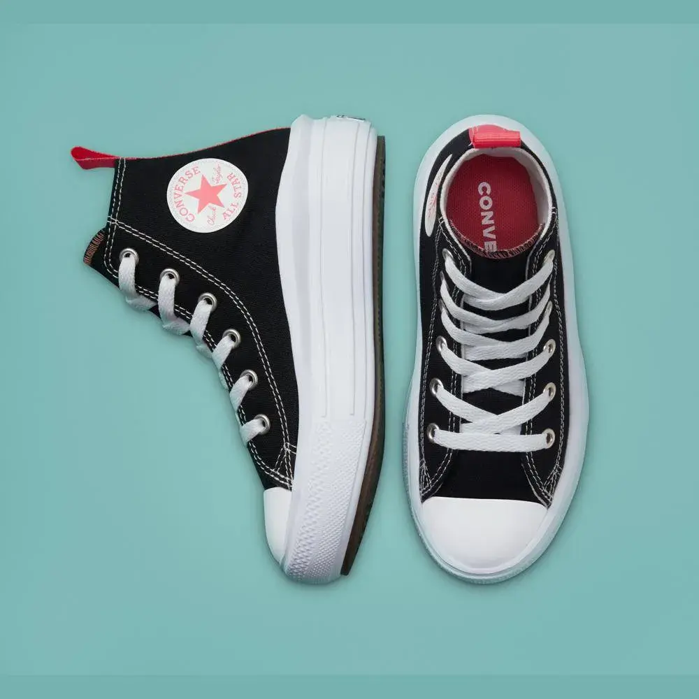 Эти новые кроссовки Chuck Taylor All Star Move обеспечивают больше стиля и высоты. Смелая, зауженная платформа добавляет неожиданный штрих, не утяжеляя ее. В отличие от традиционных тяжелых платформ, эта подошва спроектирована так, чтобы быть невероятно легкой, гарантируя, что ничто не будет сдерживать их. От класса до игровой площадки, эти кроссовки с высоким вырезом обеспечивают свободу и гибкость, необходимые для непрерывной активности, позволяя детям бегать, прыгать и играть с легкостью и непревзойденным комфортом.