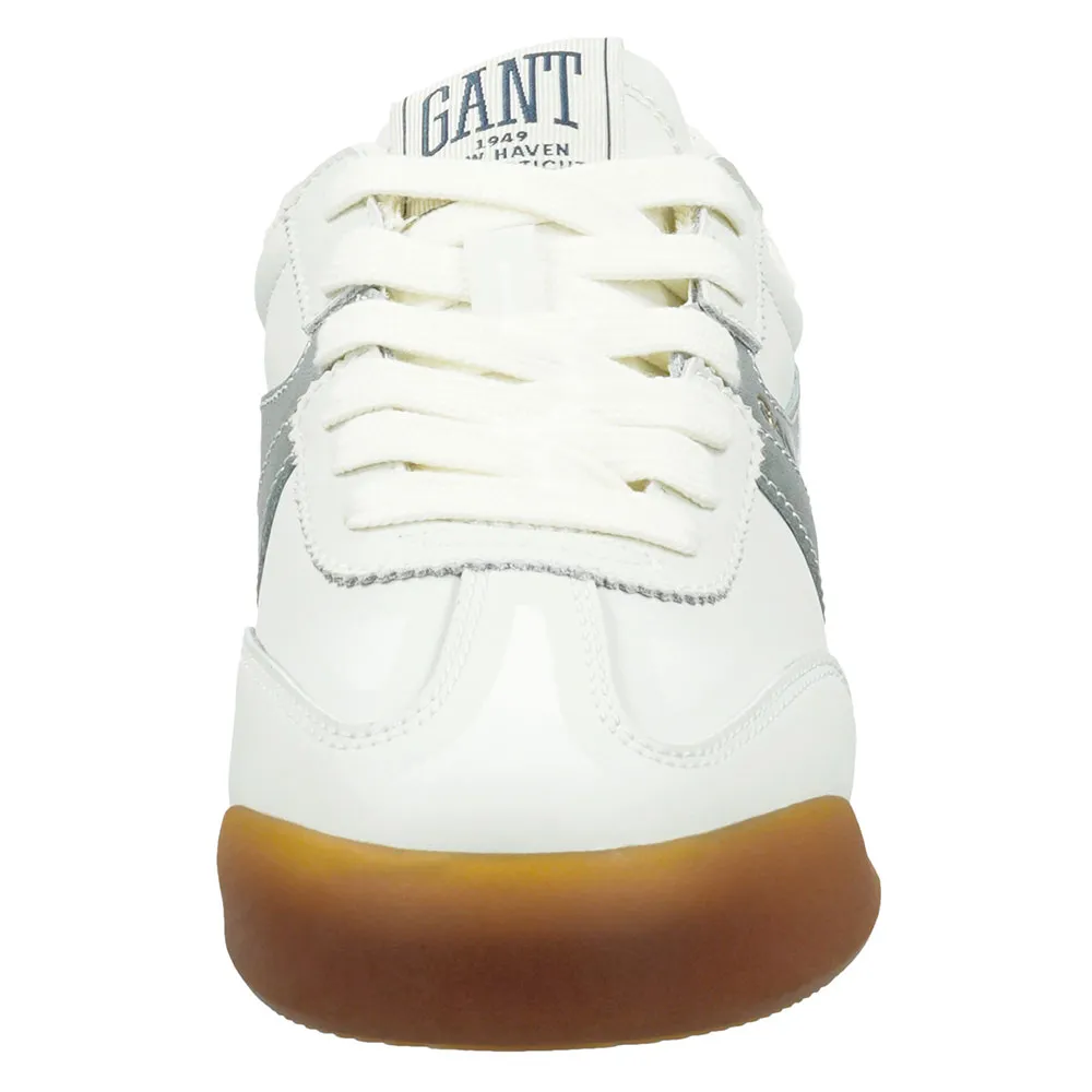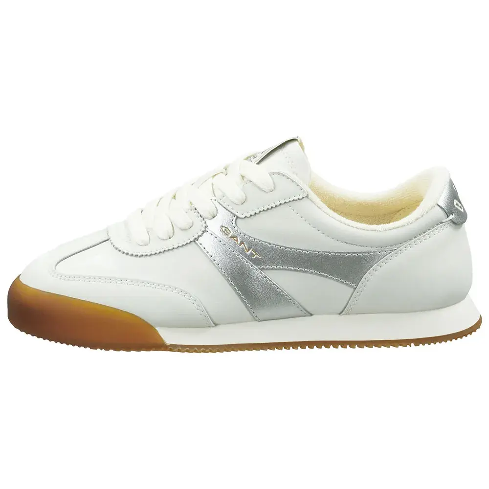 Модные кроссовки в ретро-стиле 90-х годов из кожи с эффектным логотипом GANT на язычке, сбоку и в области пятки.