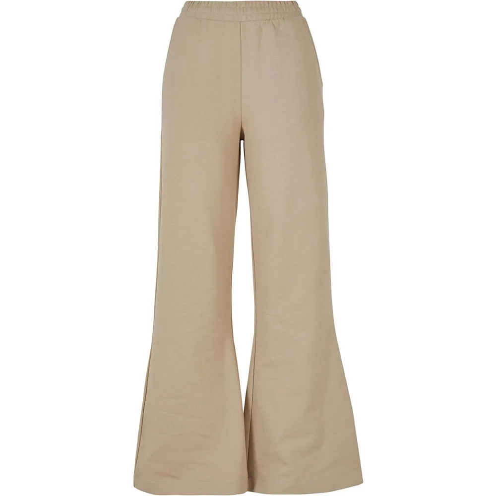 Женские спортивные брюки очень широкие благодаря свободному крою, который ещё больше подчёркивает расклешённые штанины. Пояс на удобной резинке со встроенным шнурком. Практичные боковые карманы и накладной карман сзади дополняют образ. Женские спортивные брюки изготовлены из приятного для кожи органического хлопка.