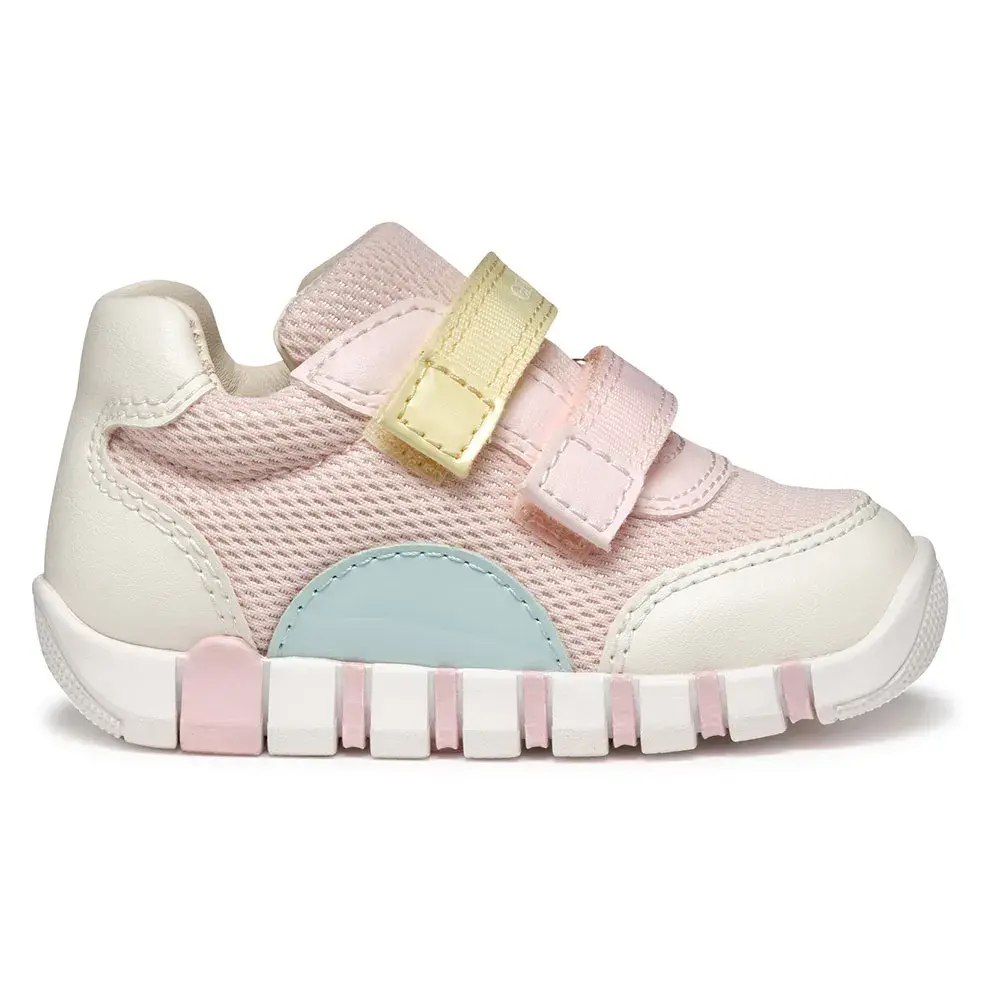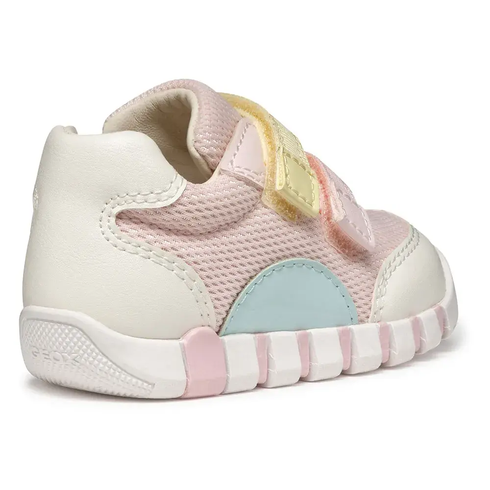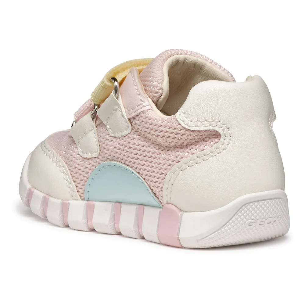 Iupidoo — это удобные кроссовки для девочек, которые помогут им начать ходить, изготовленные из комбинации сетки и материала с эффектом кожи.