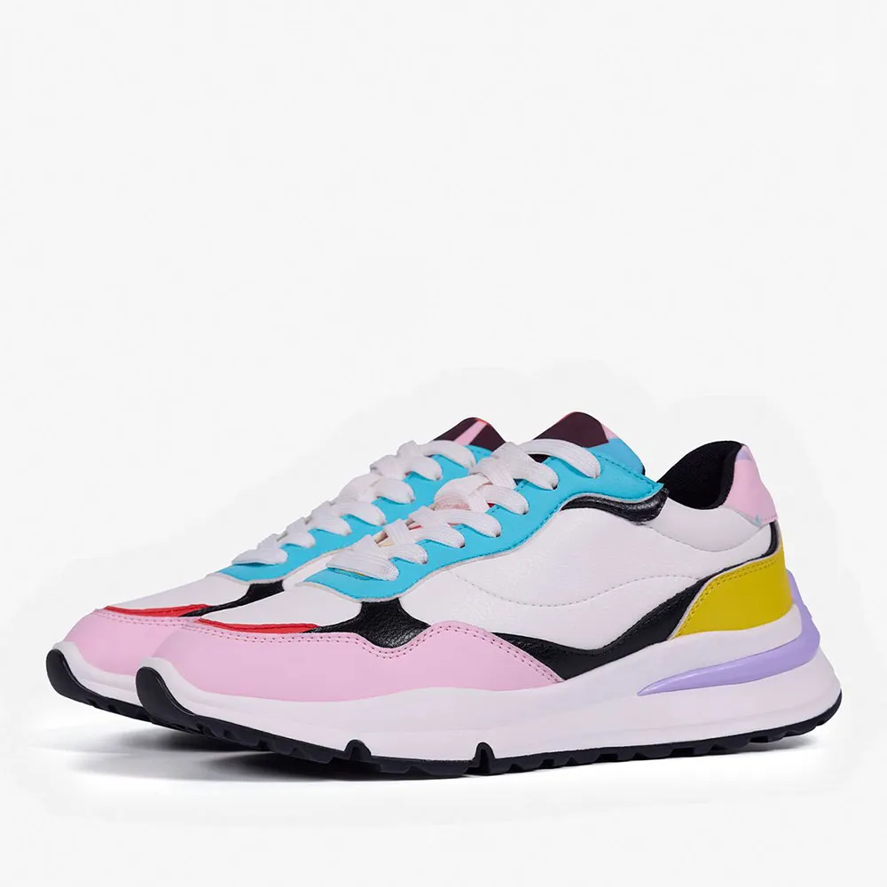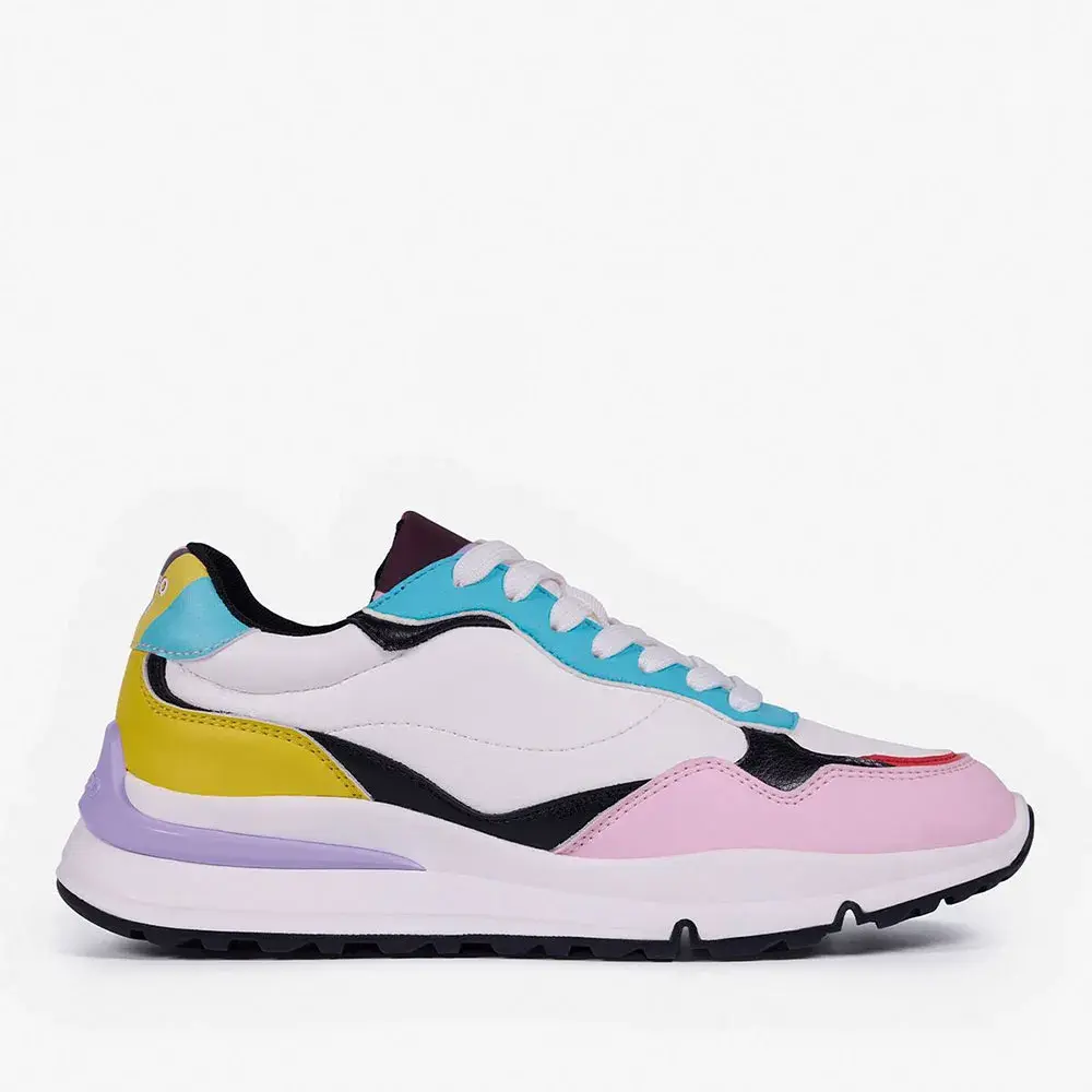 Разноцветные кроссовки изготовлены из кожи высочайшего качества.