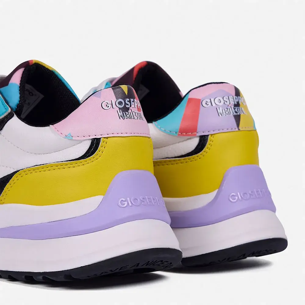 Эти кроссовки сочетают в себе ностальгию и авангард, воплощая дух культовой Мелани через характерные цвета и принты Марии Эскоте.