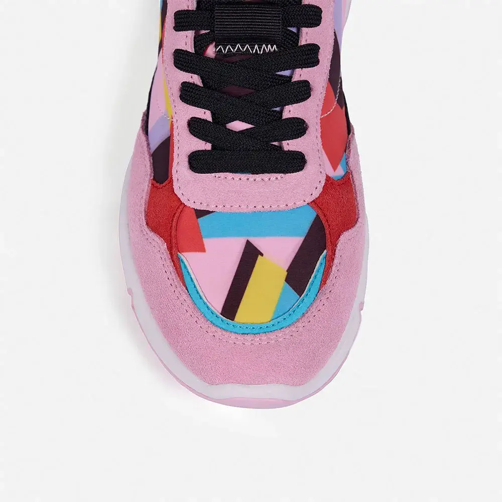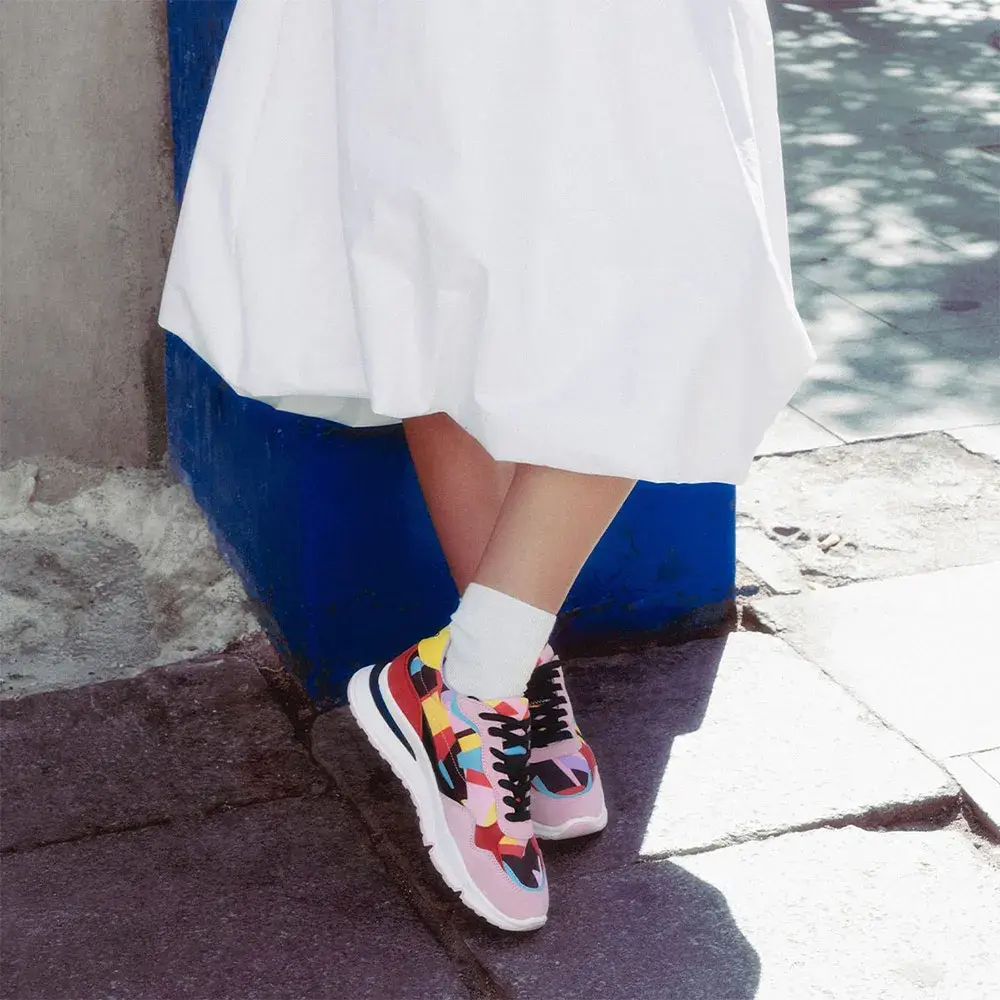 Кроссовки с разноцветным принтом изготовлены из кожи высочайшего качества.