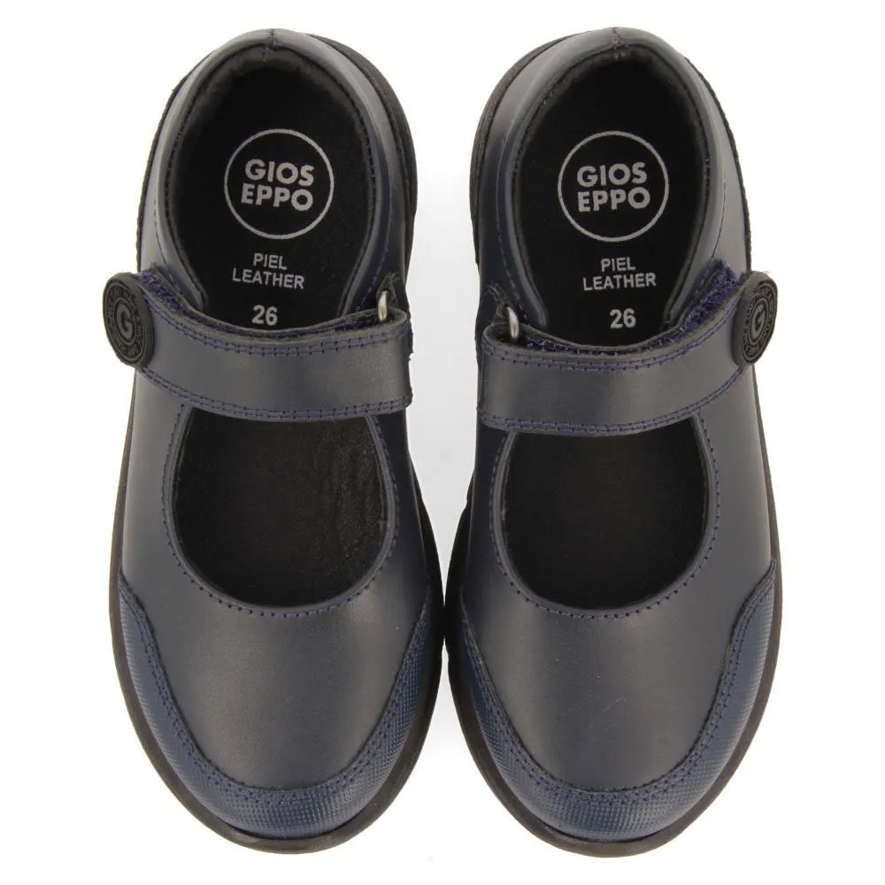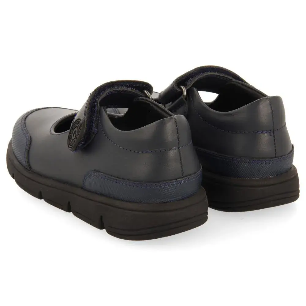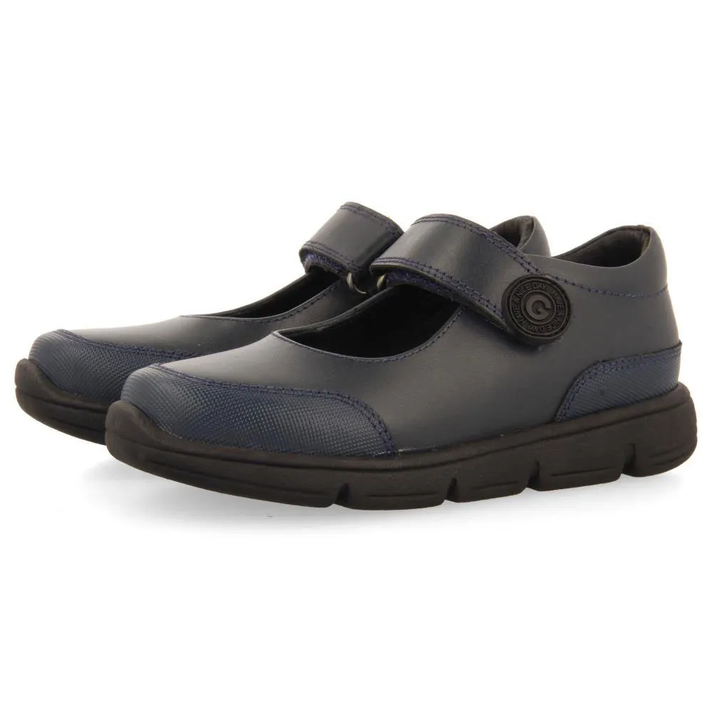 Справиться со всеми трудностями нового учебного года! Темно-синие школьные балетки из кожи с регулируемыми застежками.
