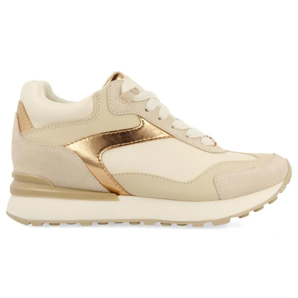 Золотистые кроссовки с внутренней танкеткой для женщин.