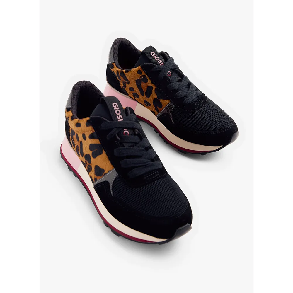 Кроссовки из замши с принтом, имитирующим мех животных, цветными акцентами и потрескавшимися деталями.