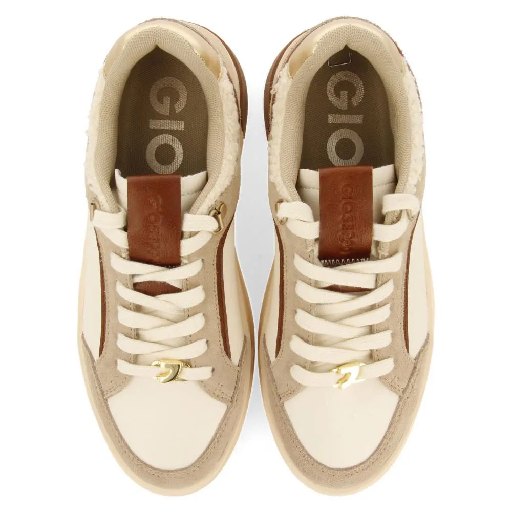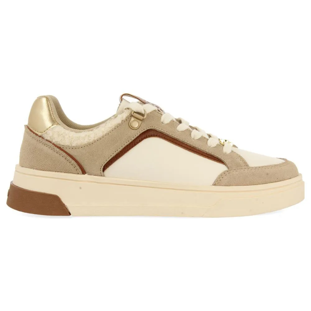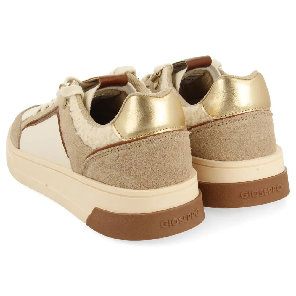 Внимание, тренд! Бежевые кроссовки с искусственной овчиной и металлическими вставками.