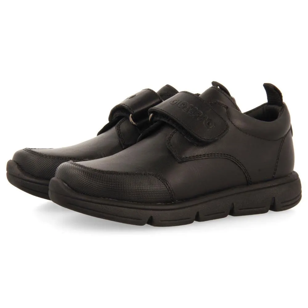 Черные кожаные школьные кроссовки с регулируемыми застежками.