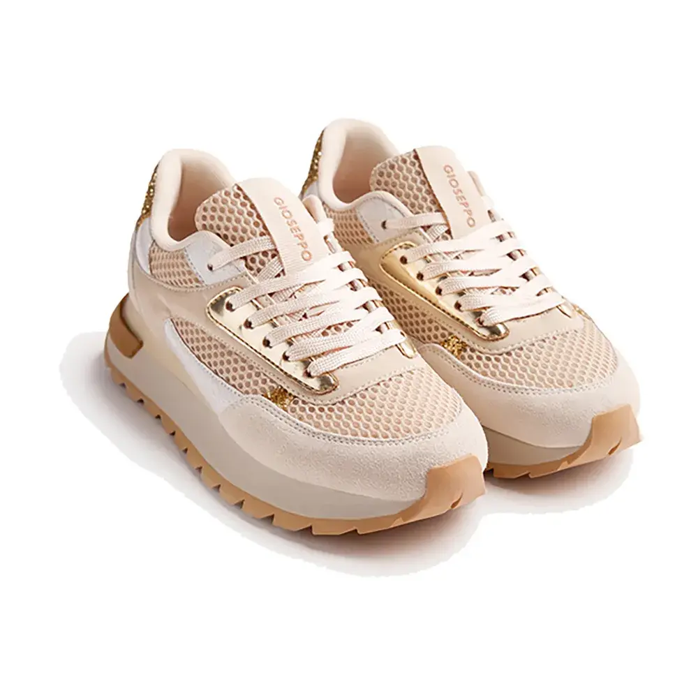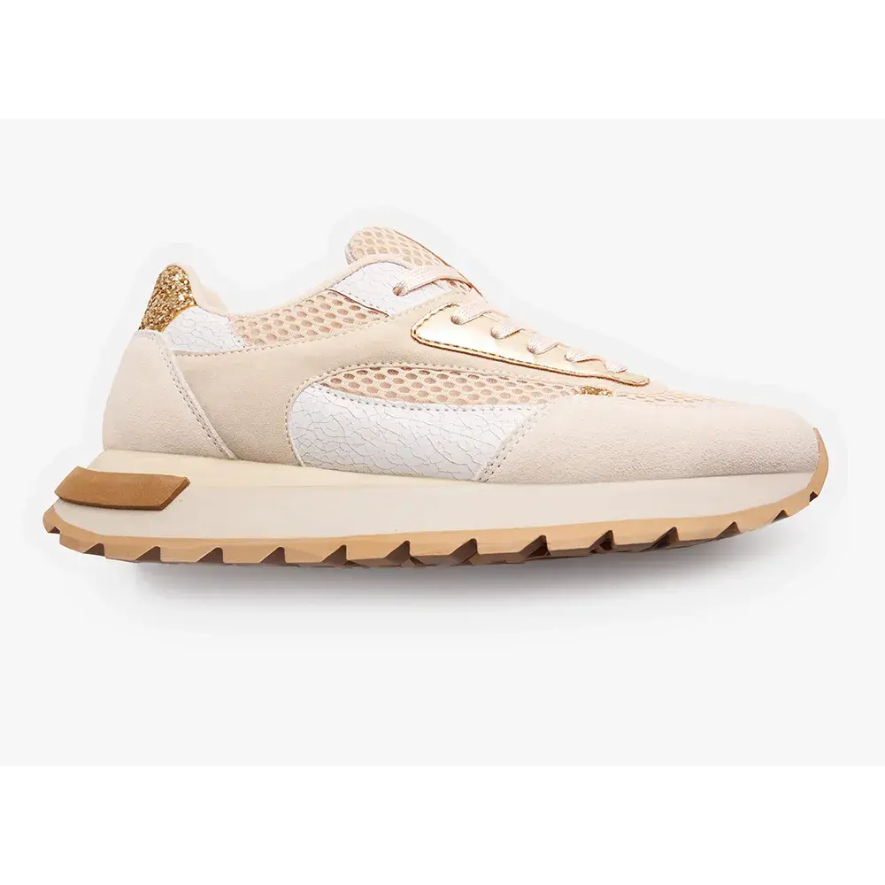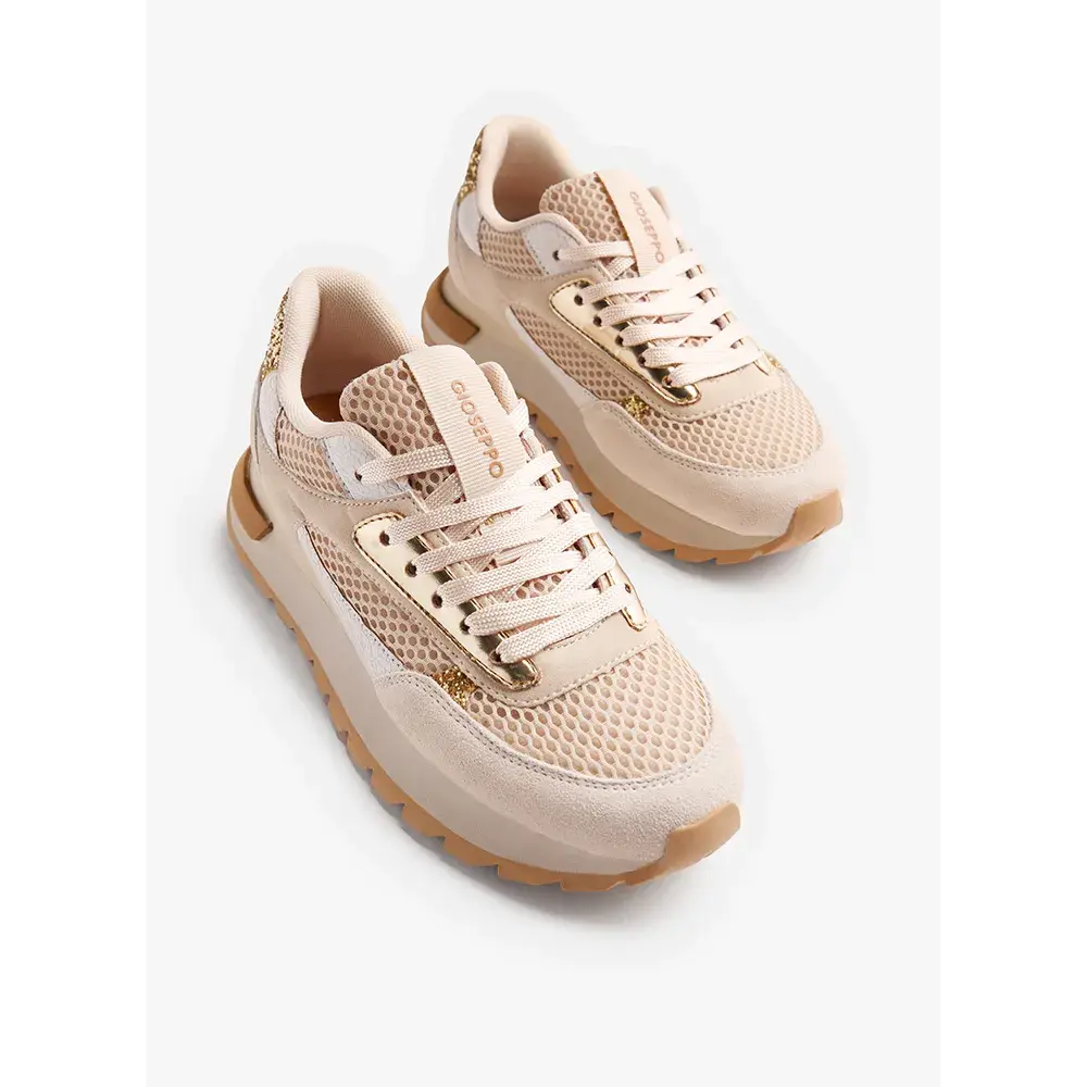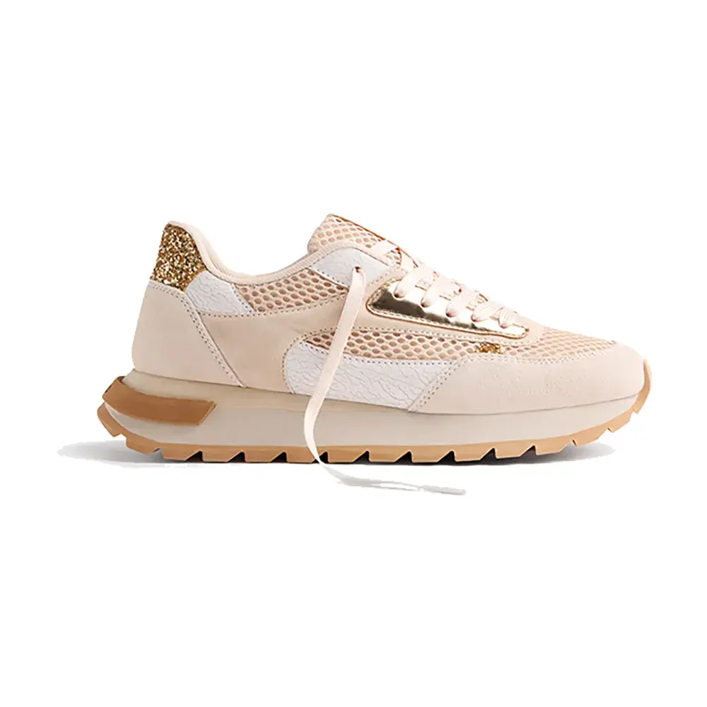 Верх из кожи, дышащего полиэстера, полиуретана и блесток.