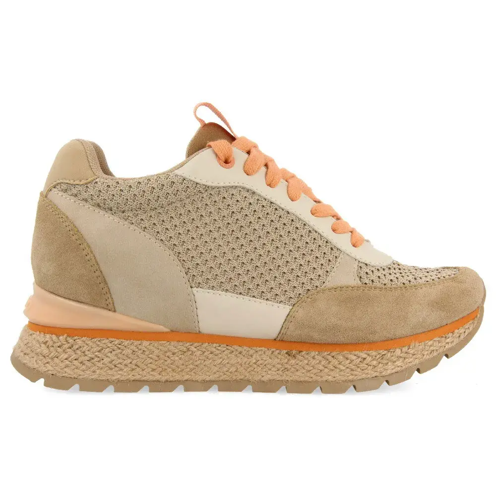 Самый средиземноморский стиль! Кроссовки бежевого цвета с внутренней танкеткой из комбинированных материалов и легкой подошвой Eva с джутовой подкладкой.