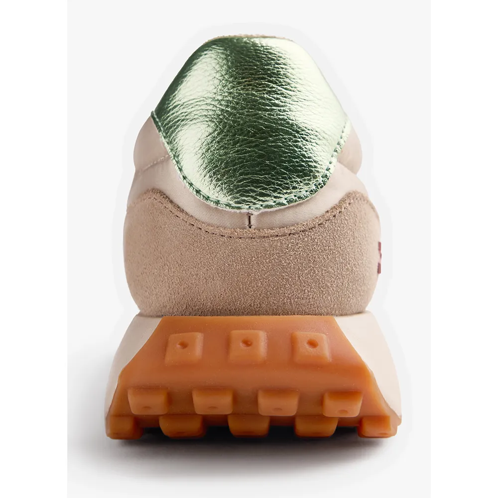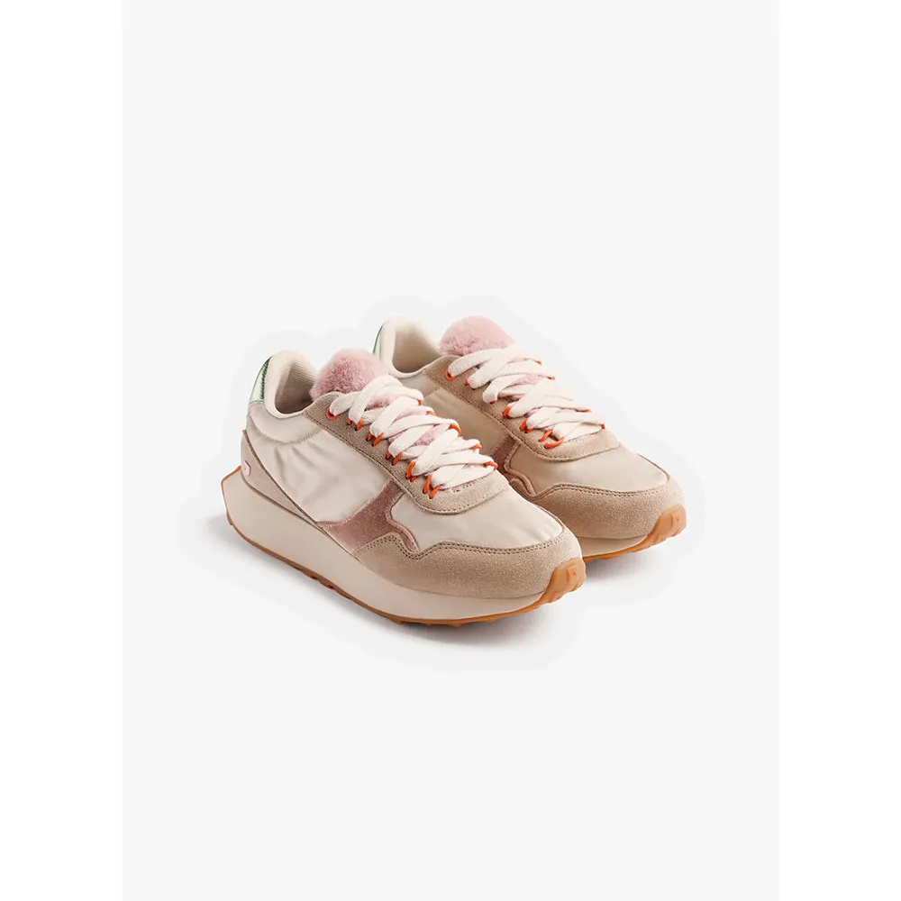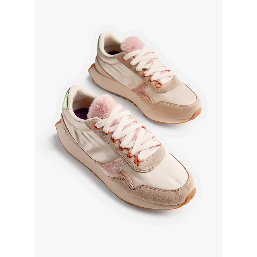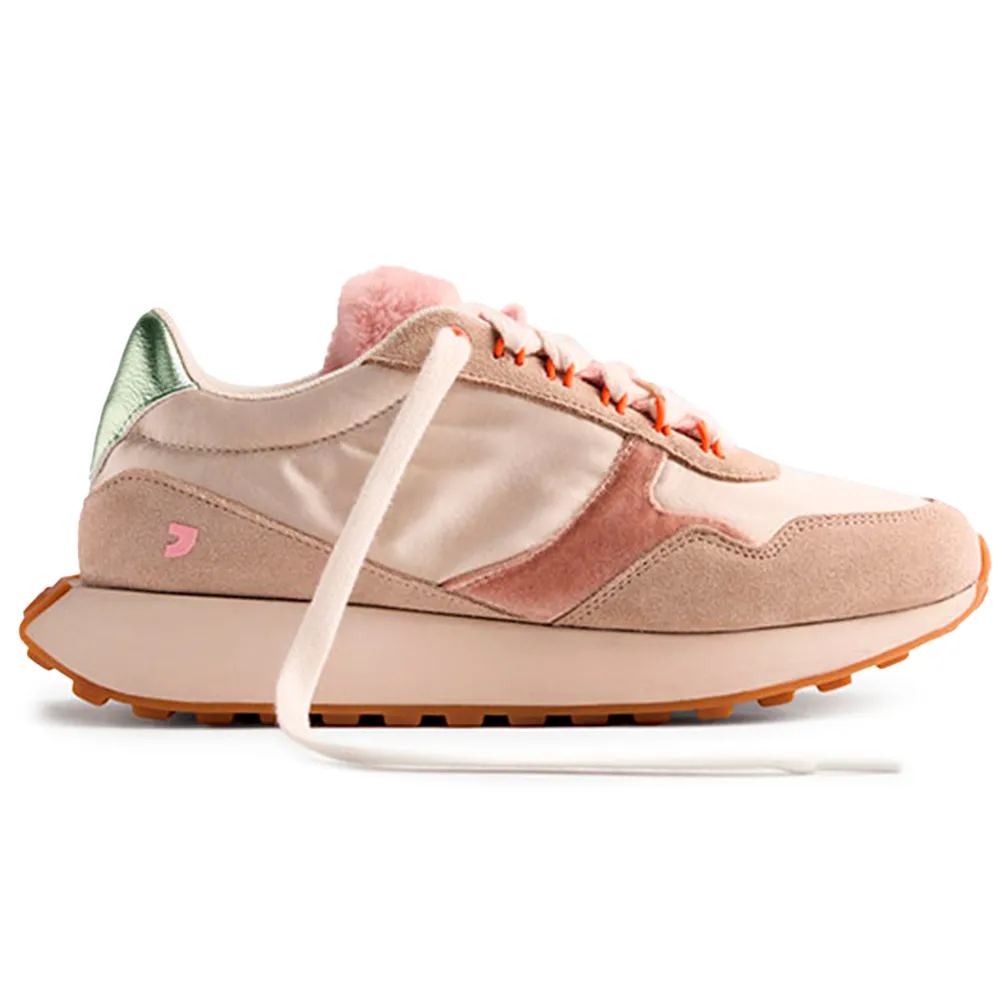 Кроссовки из замши с меховым язычком и металлической вставкой.