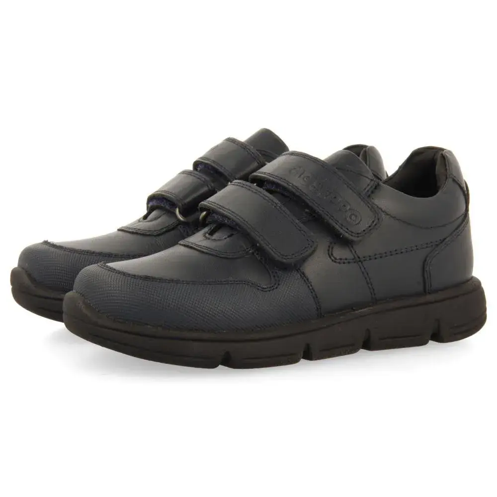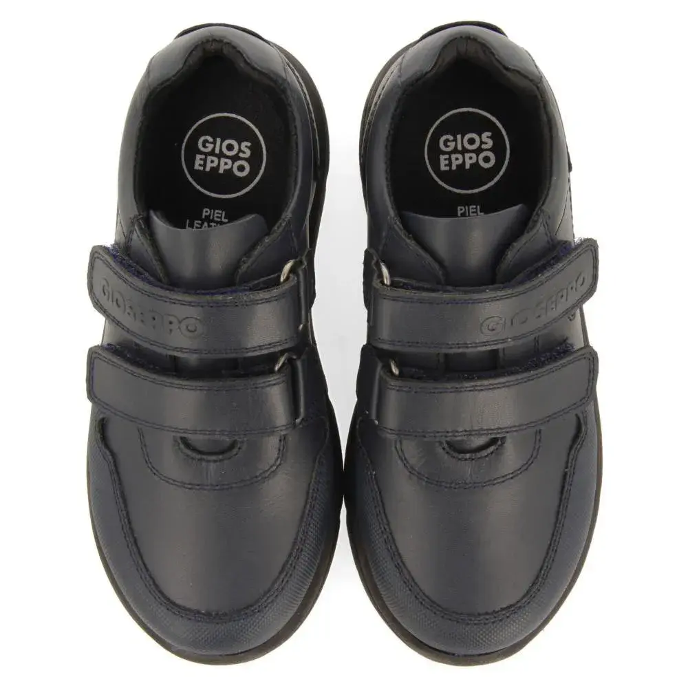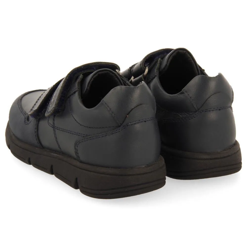 Темно-синие школьные кроссовки из кожи с регулируемыми застежками.