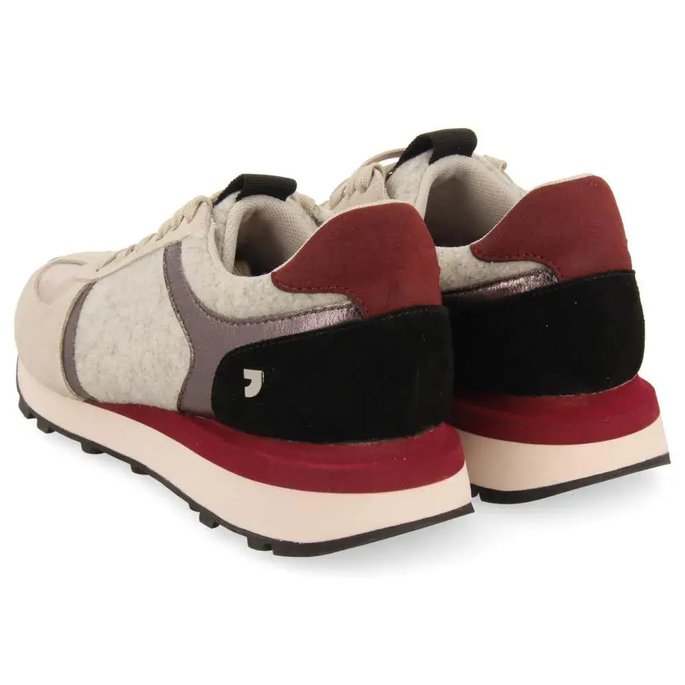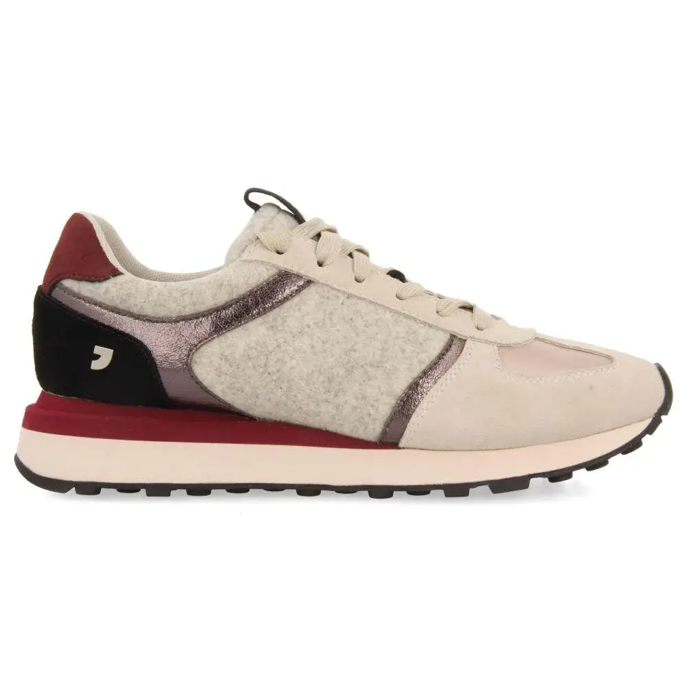 Бордовые кроссовки с металлическими вставками и войлоком.