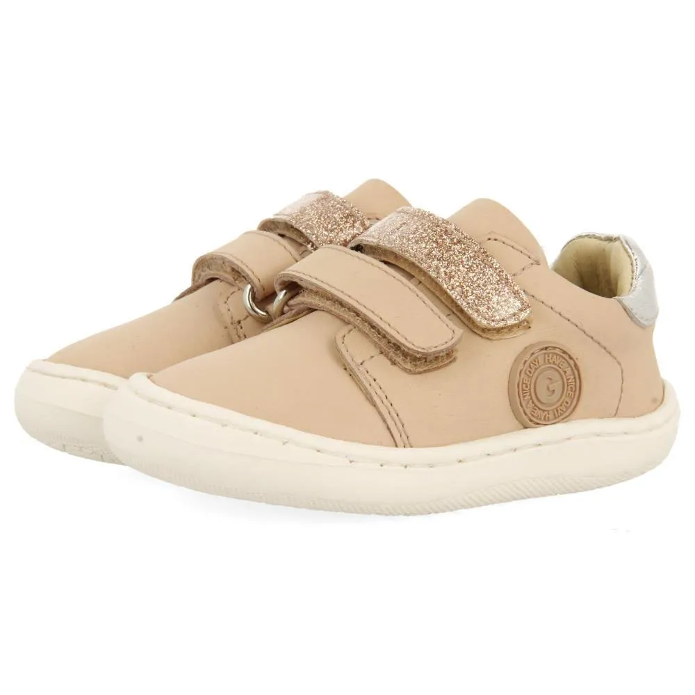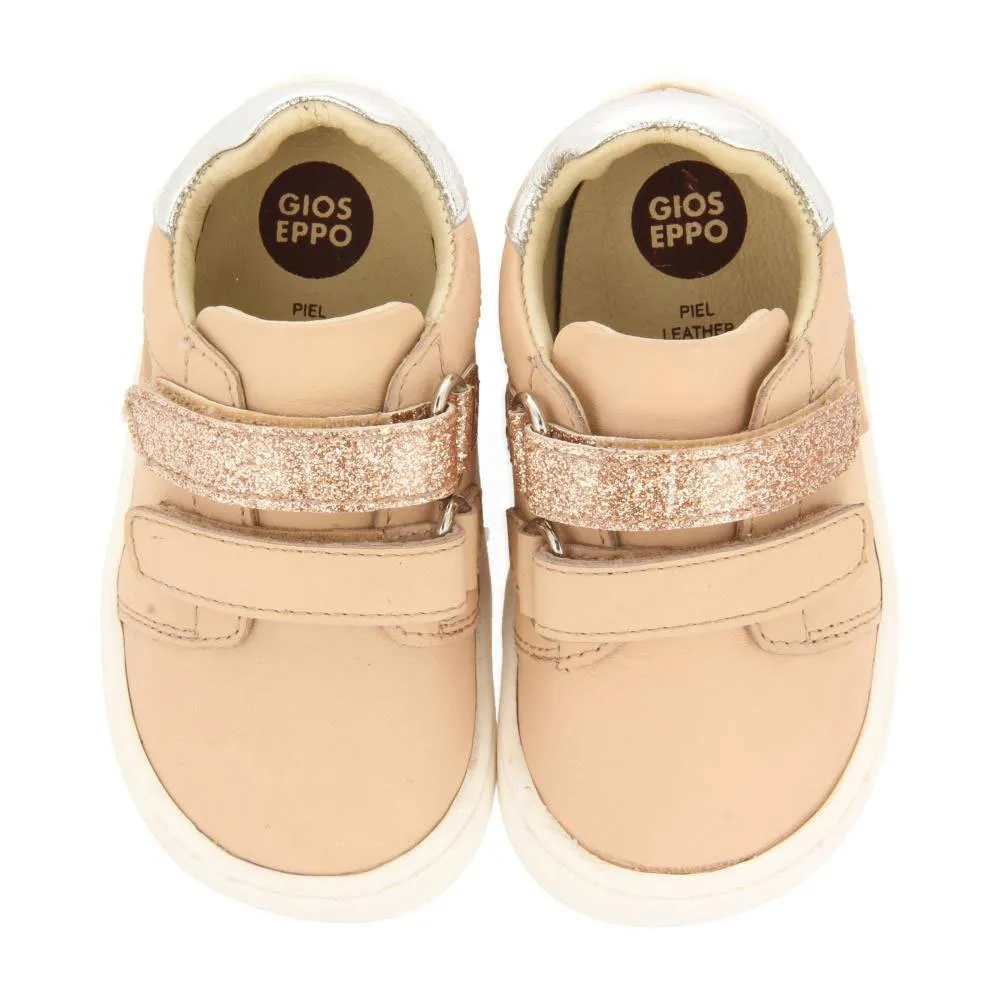 Розовые кроссовки с блестками и регулируемыми застежками без анатомических элементов, которые могли бы препятствовать оптимальному развитию стопы.
