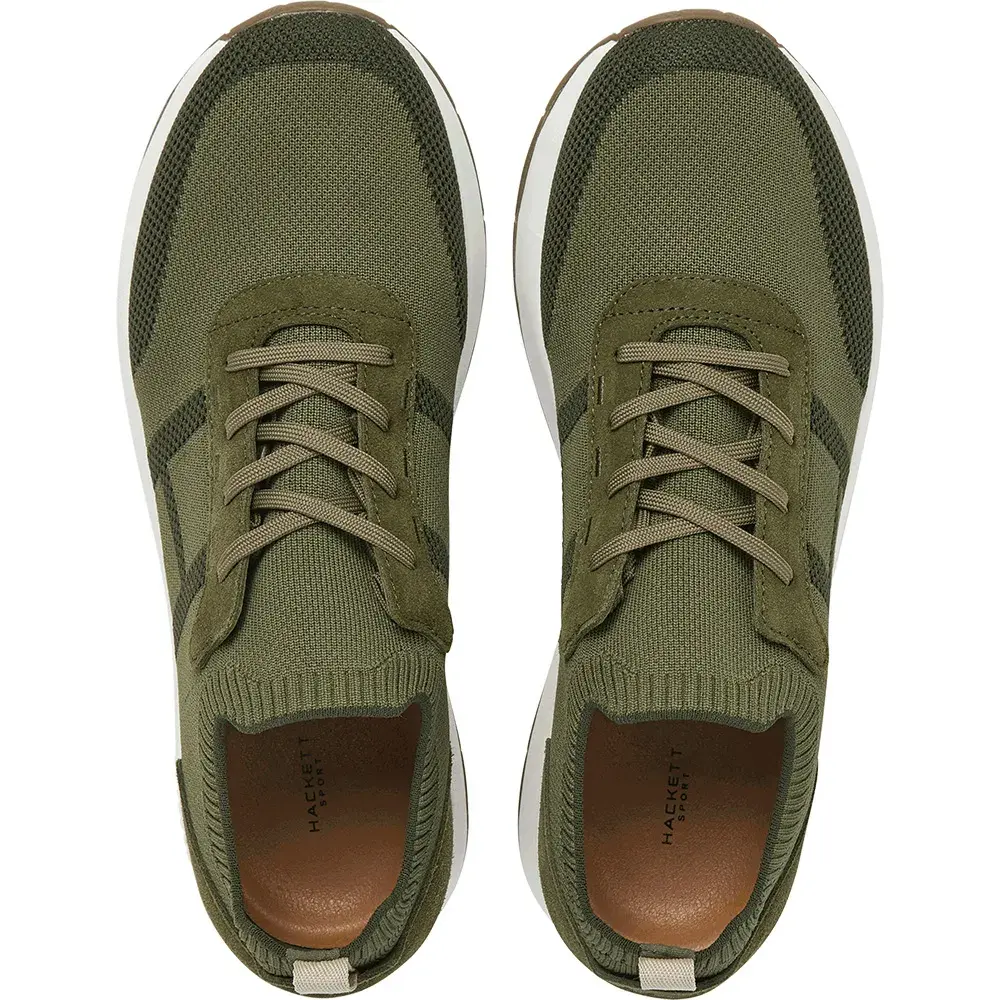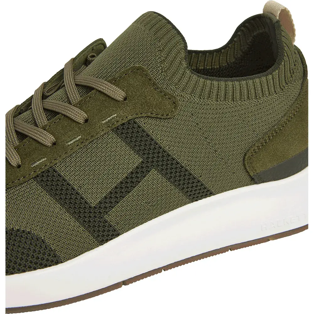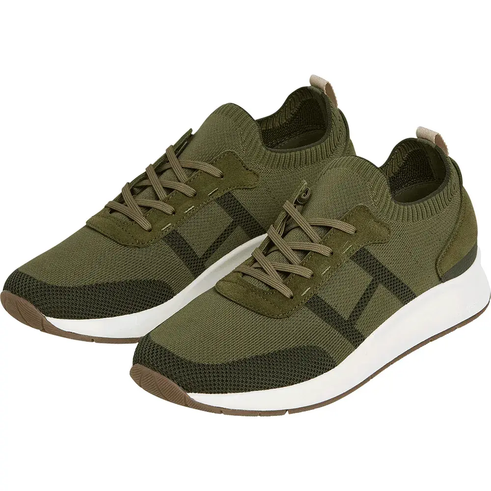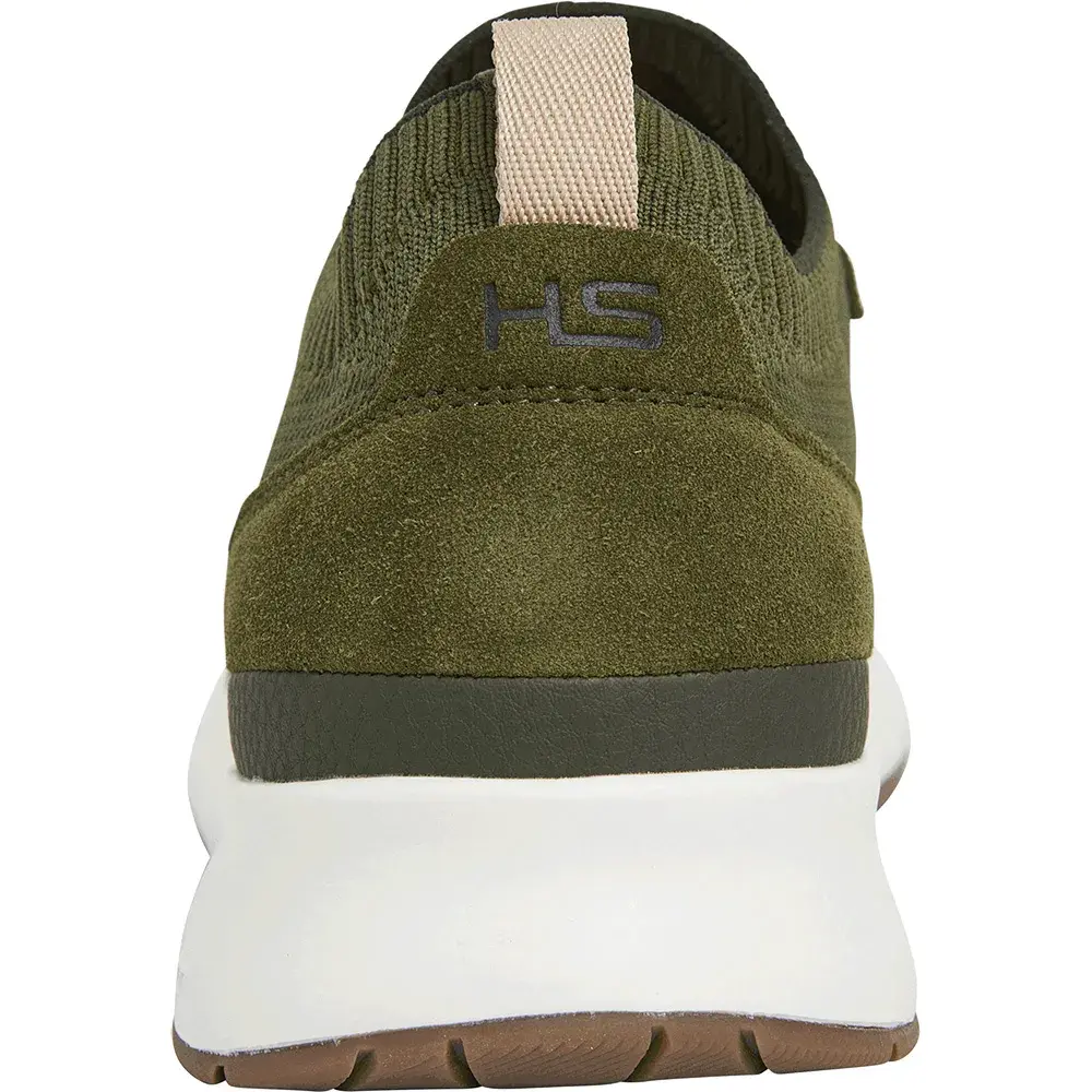 Спортивный силуэт кроссовок H-Runner, двухцветный верх из эластичного трикотажа Primeknit в сочетании с кожаными вставками из коровьей замши в системе застежки и на пятке, интегрированный логотип-монограмма «H» на берце, контрастная по цвету отделка воротника и петля для шнуровки, съемная термоформованная стелька и сверхлегкая подошва из филона двойной плотности и резины.