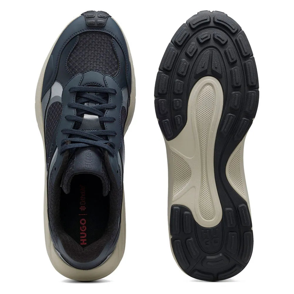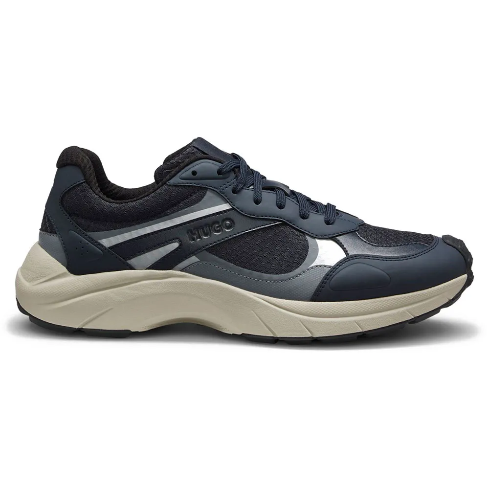 Эти кроссовки HUGO Menswear с защитой от брызг и защитой носка созданы для долгих путешествий. Верх выполнен из комбинированной ткани с синтетическим покрытием и спортивной сеткой. Синтетическая ткань с покрытием, иногда называемая искусственной кожей, — это материал, имитирующий натуральную кожу и/или имеющий матовый, глянцевый, гладкий или текстурированный вид.