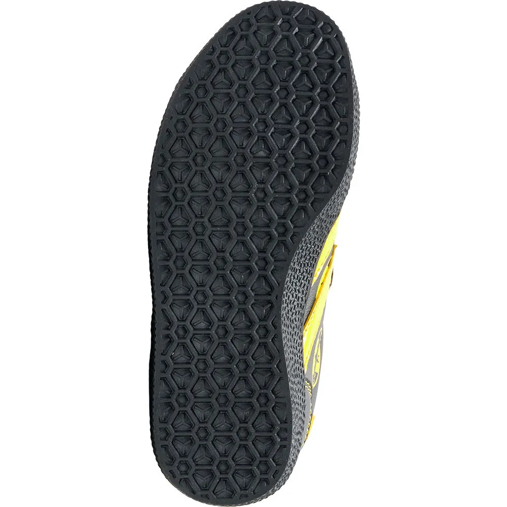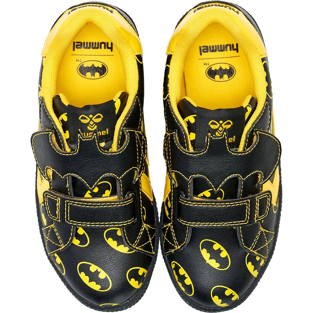 Детям понравится контрастный стиль кроссовок BATMAN JET COURT LOW с культовыми черными и желтыми цветами, шевронами Hummel и ремешком-липучкой с эмблемой Bat Emblem, который также можно обрезать для достижения идеальной посадки.