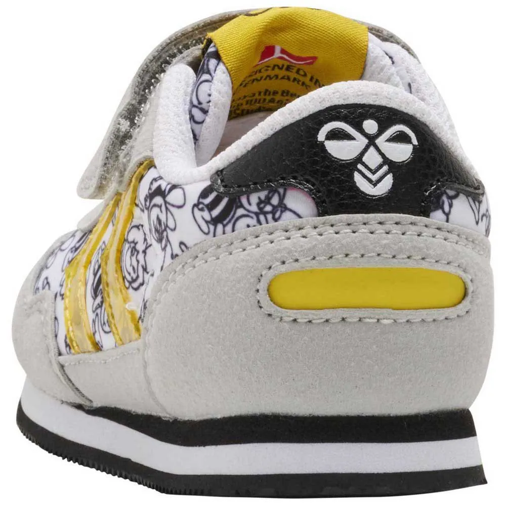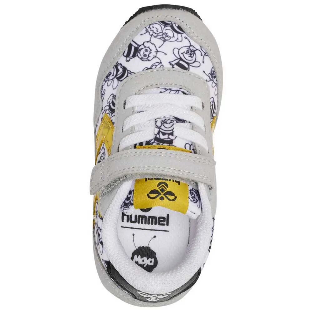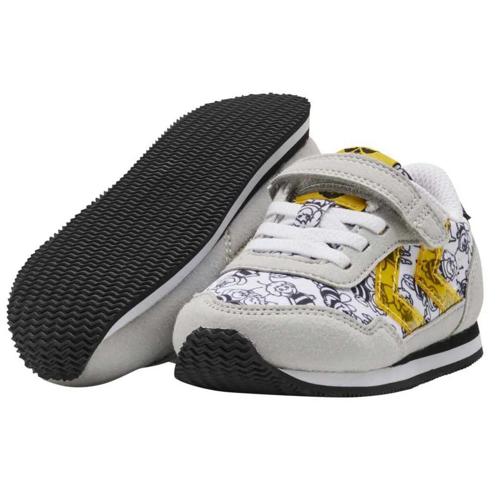 Ретро-стиль MAYA THE BEE REFLEX INFANT, созданный в сотрудничестве с пчелкой Майей, отличается забавным принтом по всей поверхности и фирменными прозрачными желтыми шевронами Hummel по бокам.