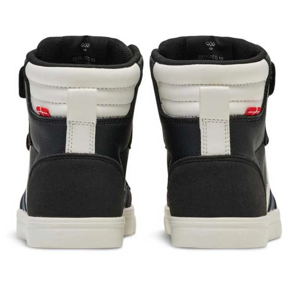 Кроссовки SLIMMER STADIL LEATHER HIGH JR – это стиль Hummels Heritage, призванный привлечь внимание. Высокий крой, прочная вулканизированная подошва и верх из кожи/замши. Кроссовки оснащены практичной застежкой-липучкой, которую можно отрезать, и украшены небольшим изображением датского флага на щиколотке.