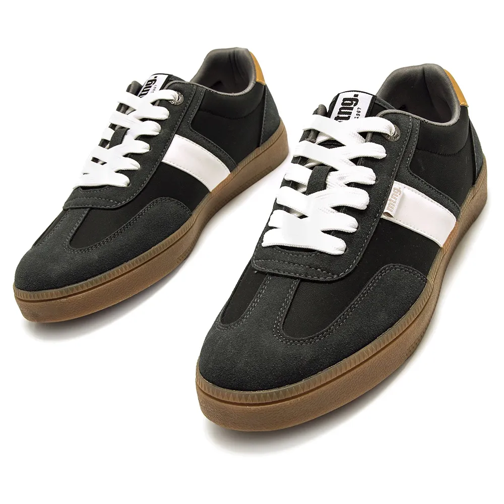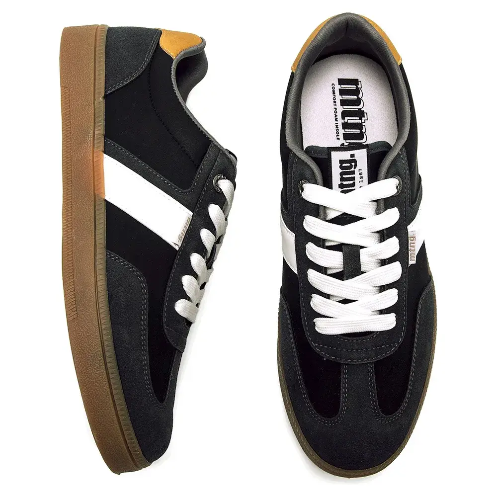 Их повседневный дизайн сочетает вставки темных тонов с белой боковой полосой, которая вместе со шнурками обеспечивает контраст, и усиление пятки горчичного цвета.