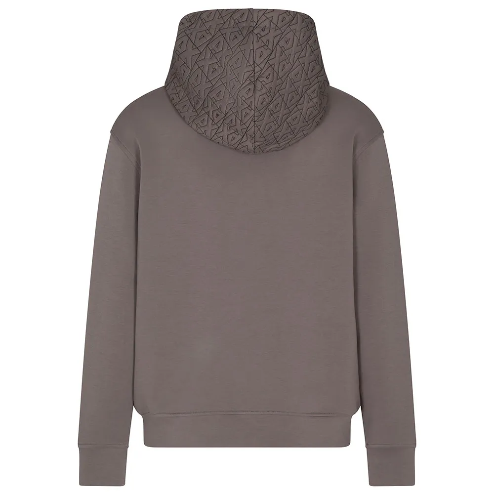 Толстовка на молнии по всей длине, стеганый логотип по всей поверхности капюшона с персонализированными завязками, прорезные карманы, ребристые манжеты и подол.