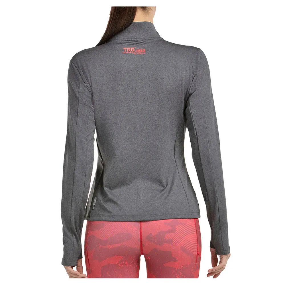 Приталенная толстовка с центральной застежкой-молнией, карманами на потайной молнии и прорезями для пальцев на манжетах. Изготовлена из катионного переработанного полиэстера с эластаном. Изготовлена из переработанного эластичного полиэстера и сетчатых вставок. Применена технология Drynamic, которая использует микроволокна для снижения влажности и потоотделения.