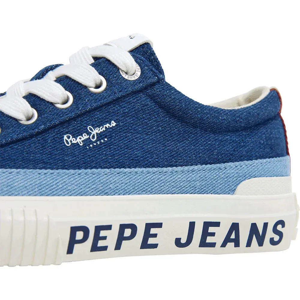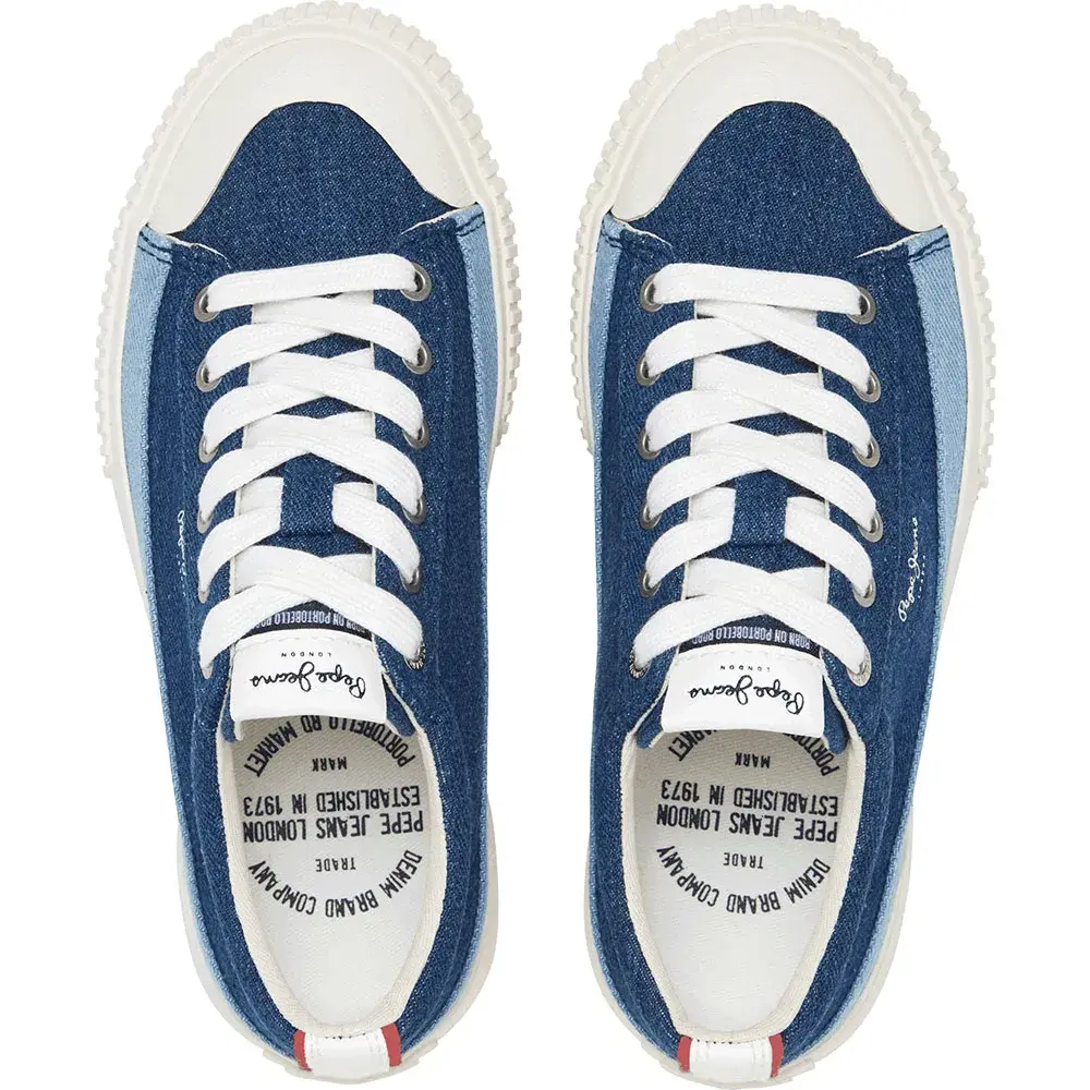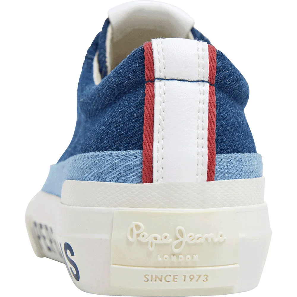 Низкие вулканизированные кроссовки Ben Denim B с верхом из джинсовой ткани, мягким бортиком, усиленной резиновой пяткой и задником, металлическими люверсами, фирменной резиновой подошвой с заглавным логотипом и классическим логотипом сбоку.
