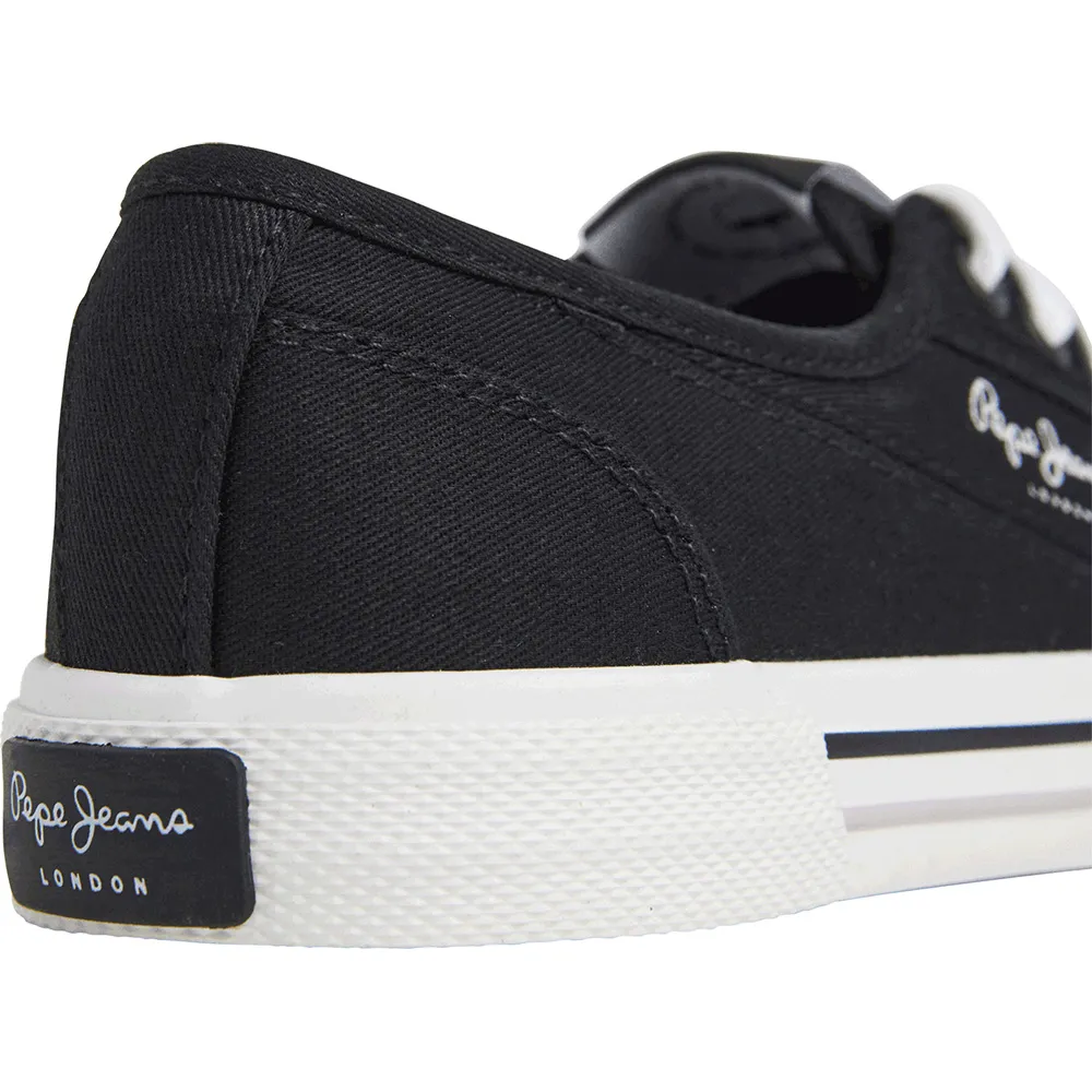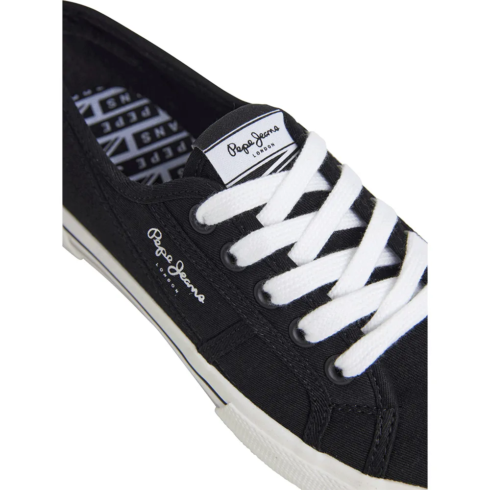 Классические культовые кеды Brady Basic W Pepe Jeans из тонкого и экологичного хлопкового твила, логотип на берце, контрастный каблук и двухцветная лисая отделка и подошва.