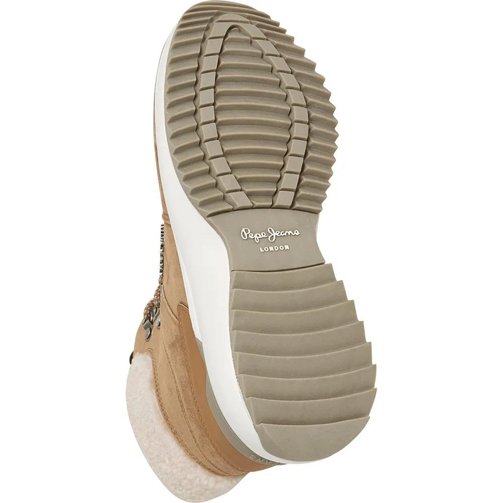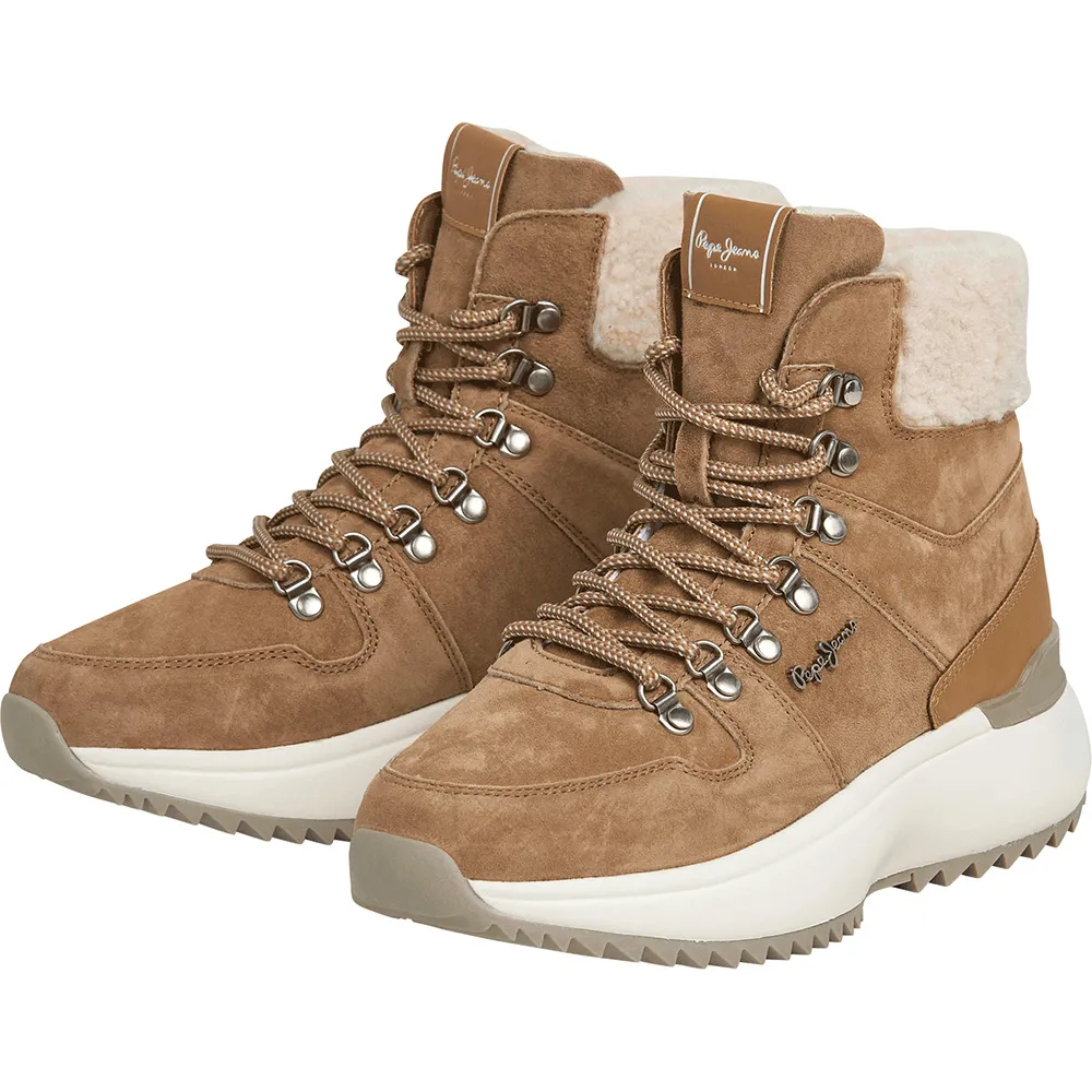 Модные ботильоны Kimi North W из свиной замши с теплой подкладкой, теплым воротником, шнуровкой, металлическими крючками, фирменным стабилизатором из термополиуретана, металлической пластиной с классическим логотипом сбоку, филоновой межподошвой и резиновой подошвой с контрастными зубцами.