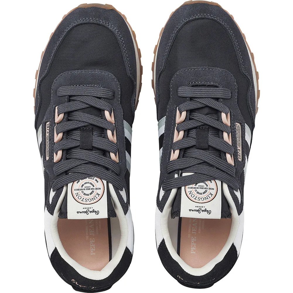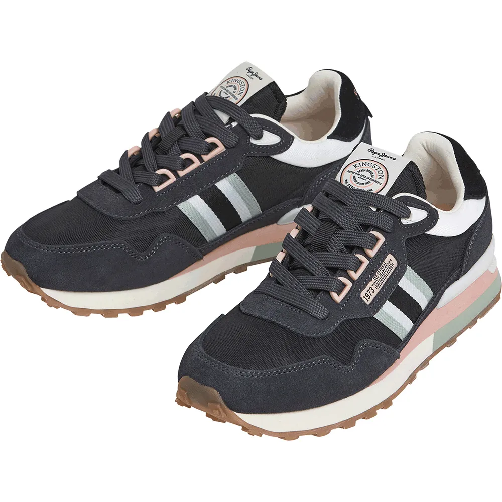 Кроссовки для бега Kingston College W с верхом из коровьей замши, технологичными люверсами из термопластичной резины, цветными D-образными кольцами, центральной лентой с цветными полосками, классическим логотипом на пятке, цветным фирменным стабилизатором, логотипом 1973 сбоку, удобной двухцветной промежуточной подошвой из ЭВА и фирменной резиновой подошвой.