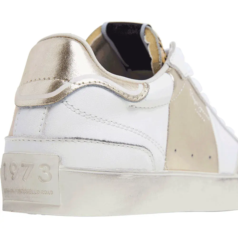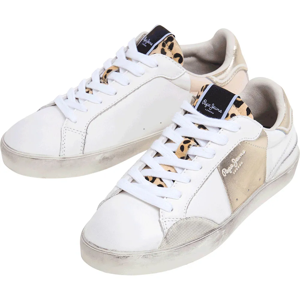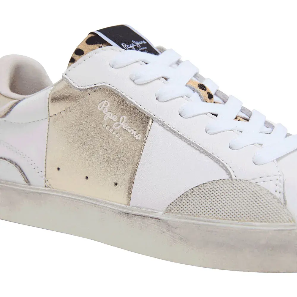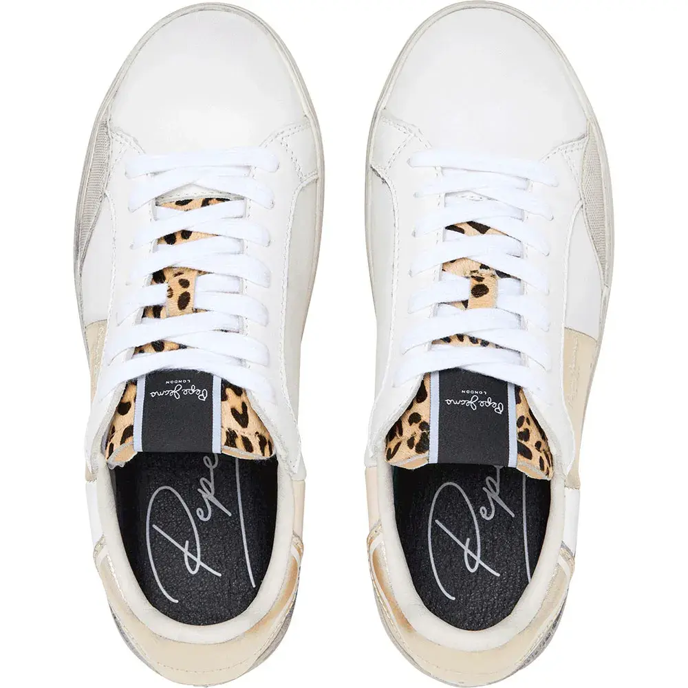 Кроссовки Lane Fun W из кожи с металлическими и леопардовыми деталями, съемной термоформованной стелькой, потертостями в виде состаренных следов на резиновой подошве и классическим логотипом сбоку.