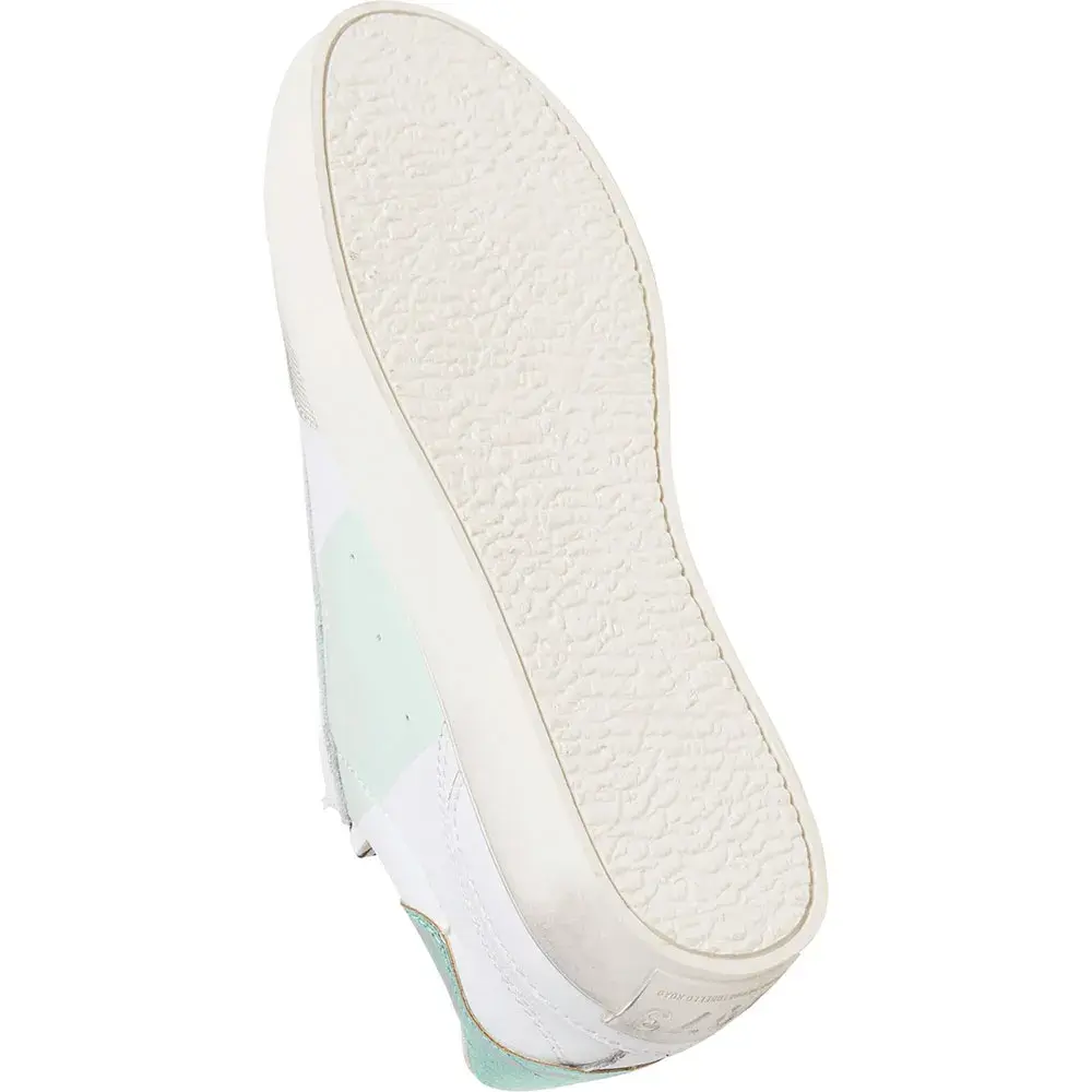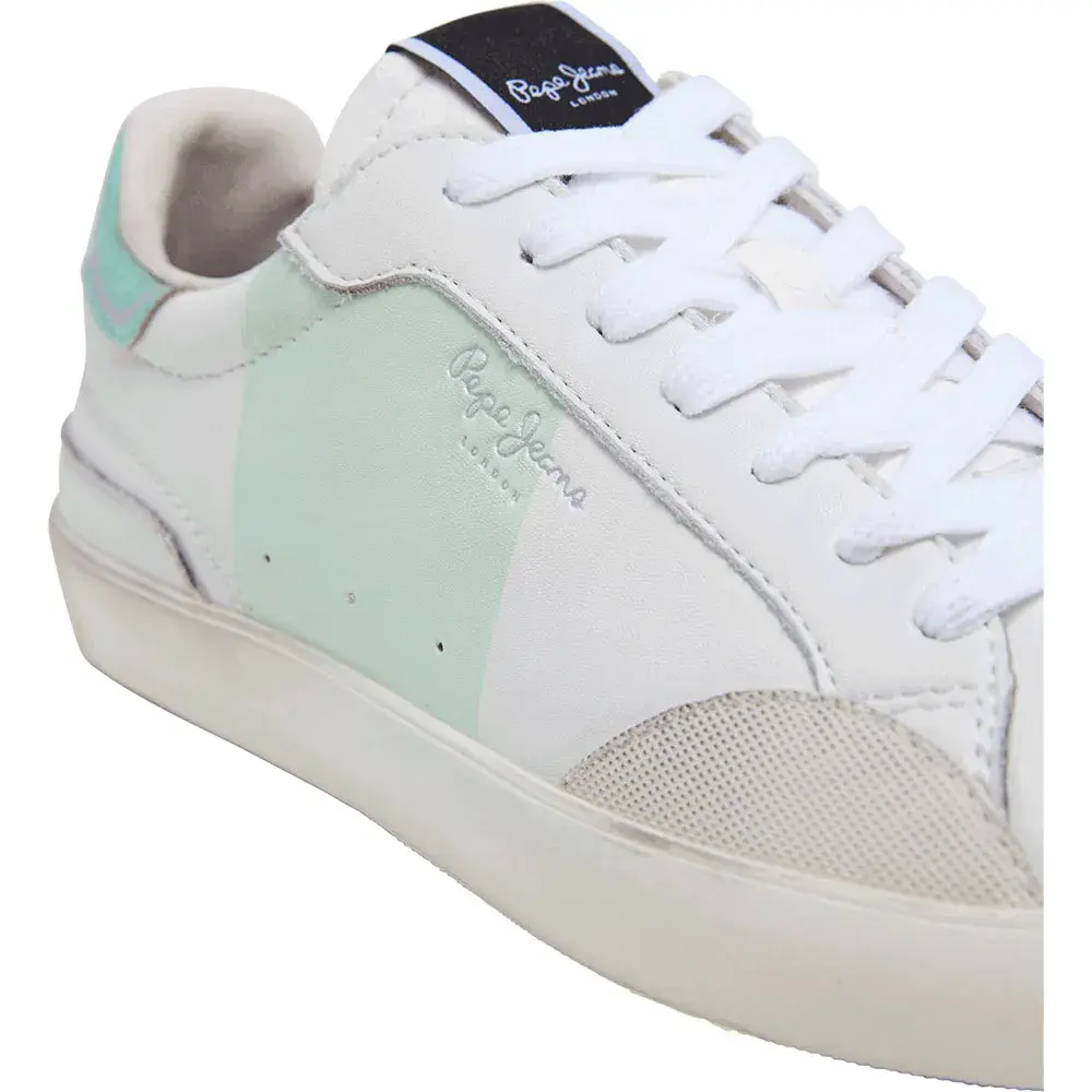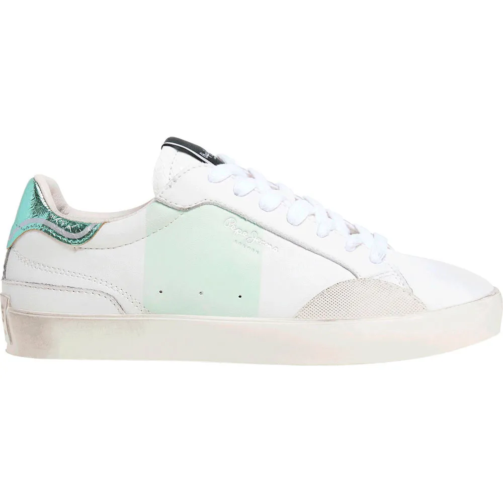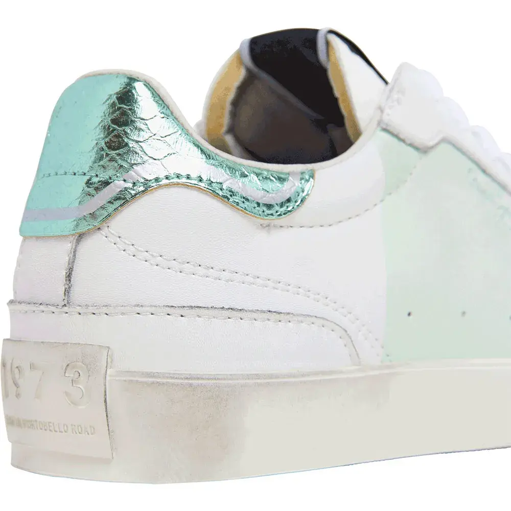 Кроссовки Lane Studio W из кожи, с фантазийным изображением змеи на пятке, съемной термоформованной стелькой, потертостями в виде состаренных следов на резиновой подошве, цветной полосой и классическим логотипом сбоку.