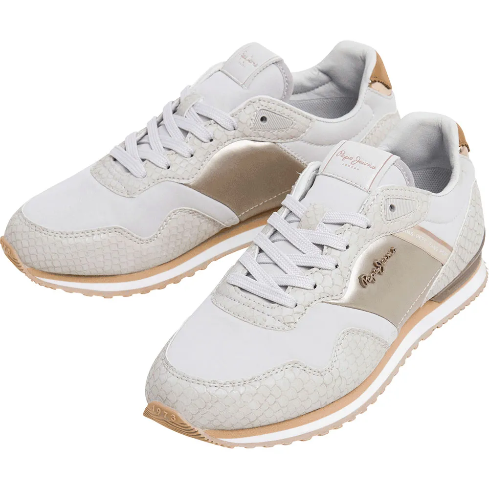 Кроссовки для бега London Mix W с комбинированными материалами и цветами, верхом в виде фантазийной змеиной кожи, удобной двухцветной промежуточной подошвой из ЭВА и резиновой подошвой, фирменным цветным стабилизатором, культовой фирменной боковой полосой, термоформованной и съемной стелькой с пеной двойной плотности и классическим металлическим логотипом сбоку.