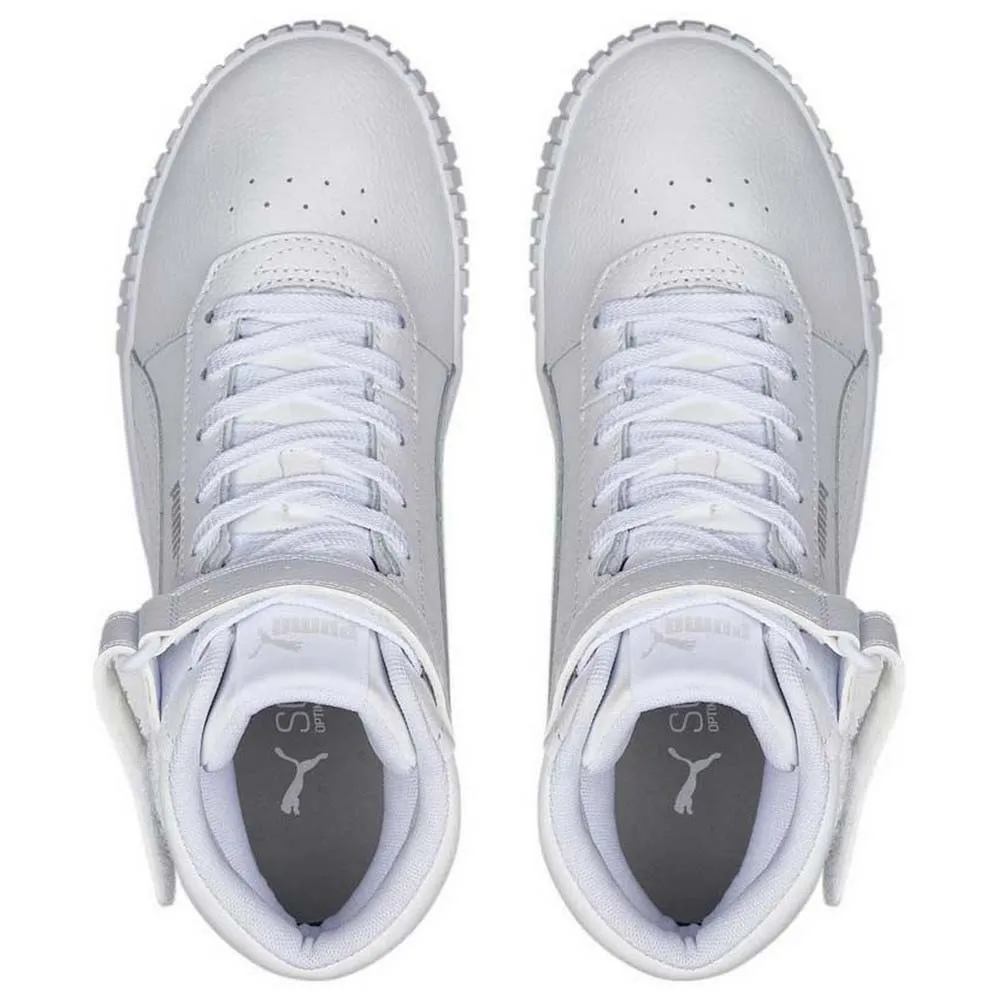 Carina 2.0 Mid вдохновлены стилем 80-х годов, этот новый теннисный силуэт интерпретирован с учетом современного непринужденного образа кроссовок калифорнийских пляжных городков. Эта новая версия сохраняет знакомый внешний вид и ощущение, но обновлена значимыми и коммерческими обновлениями, такими как новый дизайн инструментов: более широкие вертикальные линии, а также логотип PUMA на пятке добавляют молодой и уличный вид. Кожаный верх содержит переработанные компоненты и подчеркнут перфорированной мыской и хорошо известной PUMA Formstrip. Верх этой модели изготовлен не менее чем на 20% из переработанных материалов, что является шагом на пути к лучшему будущему. Один из ответов PUMA на снижение нашего воздействия на окружающую среду. Воротник средней длины в сочетании с ремешком на липучке для легкого надевания и снимания. Стелька SoftFoam+ обеспечивает превосходную амортизацию и оптимальный комфорт для каждого шага вашего дня.