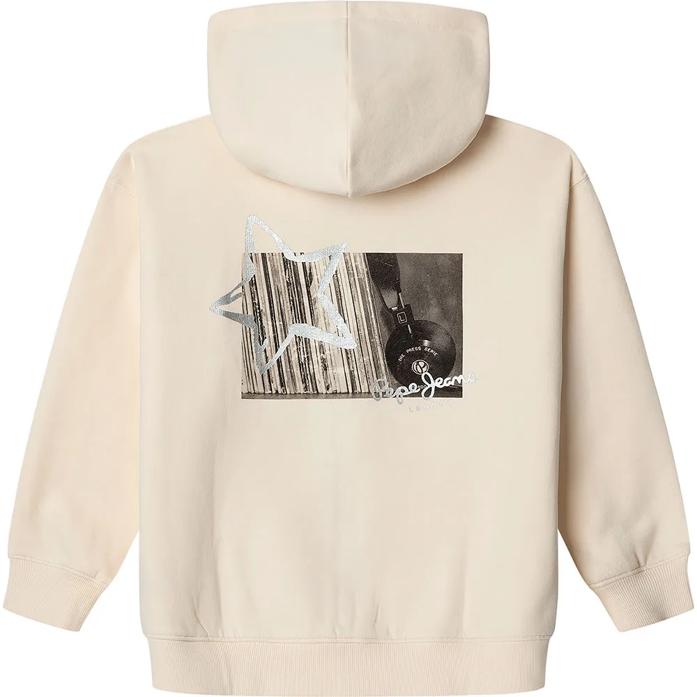 Свитшот с капюшоном на молнии с логотипом на груди слева и фотопринтом на спине.