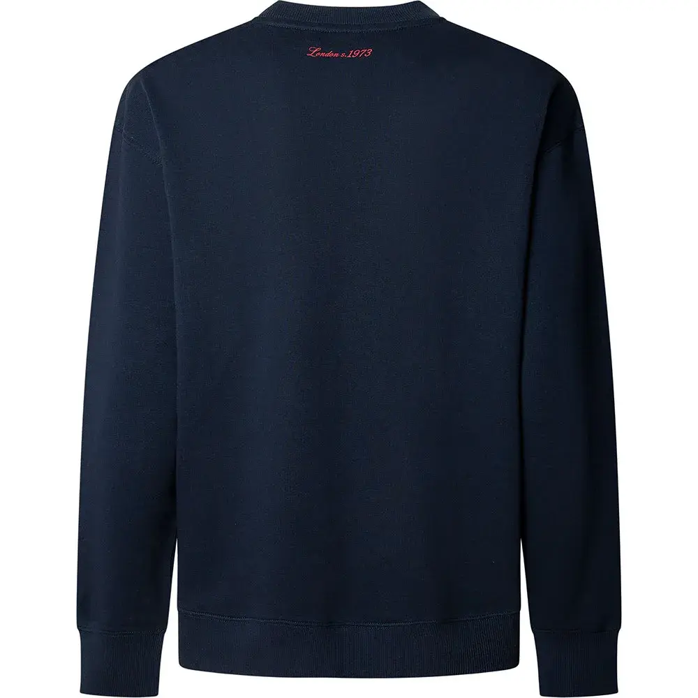 Толстовка с круглым вырезом из хлопковой ткани с петельчатой изнанкой, с небольшим рисунком на груди сбоку, принтом сзади на горловине и тканой этикеткой с изображением флага Великобритании, вставленной в боковой шов.