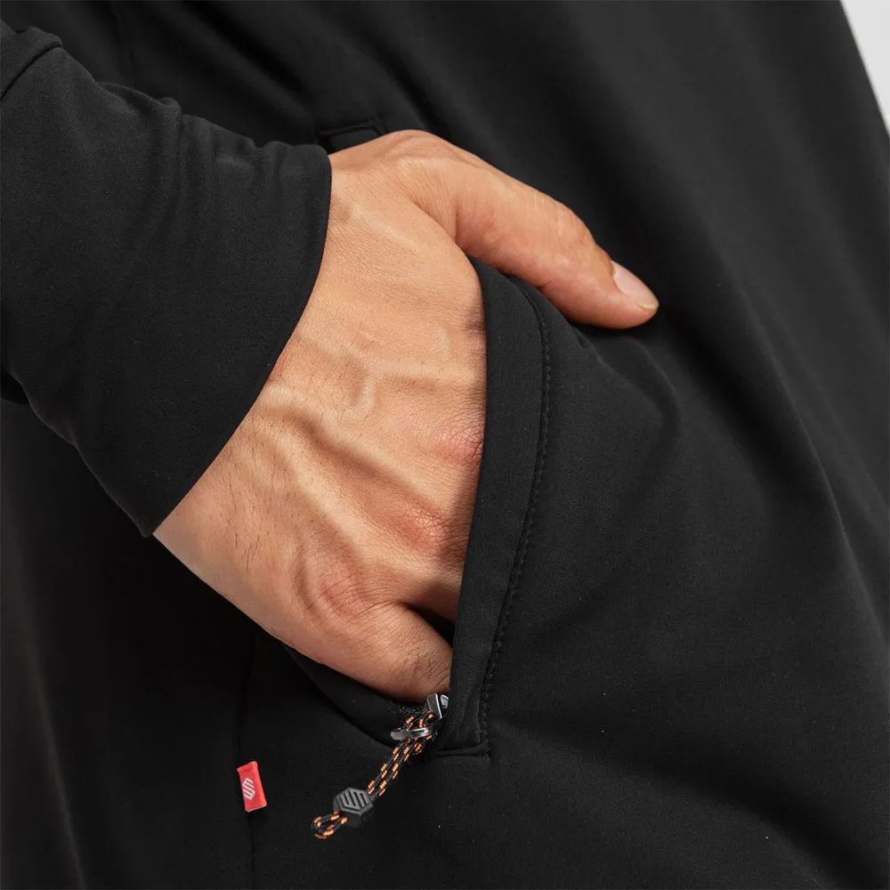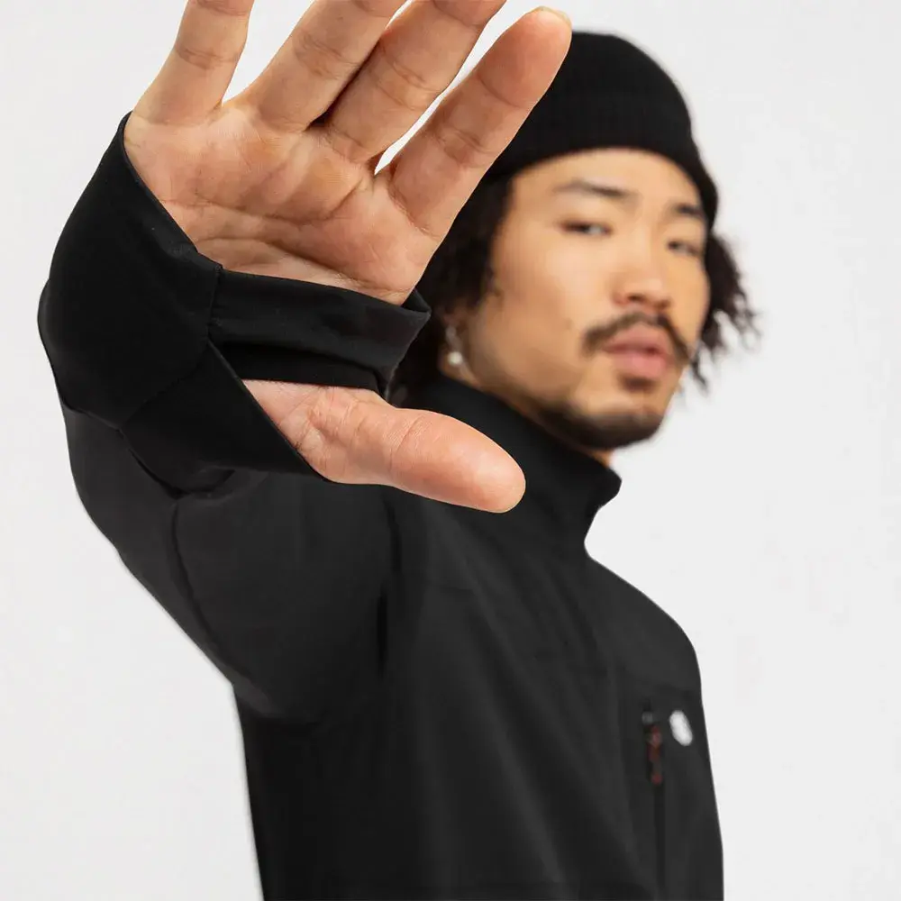Идеальная теплая и легкая толстовка среднего слоя из эластичной ткани с начесом внутри, отверстиями для больших пальцев и тремя карманами.