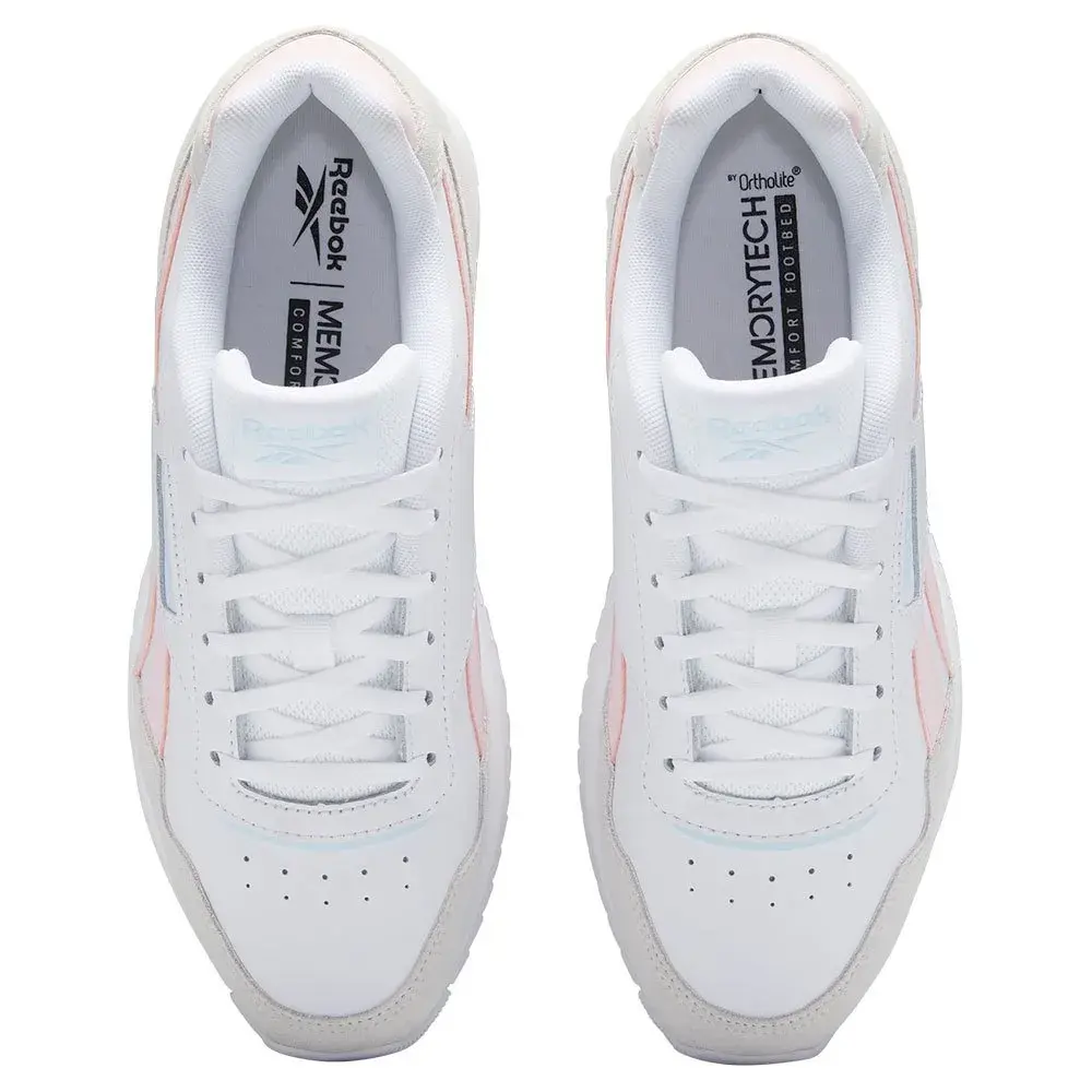 Эти женские кроссовки Reebok имеют мягкие пастельные детали на боковых полосках и пятке, которые придают им изящный контраст.