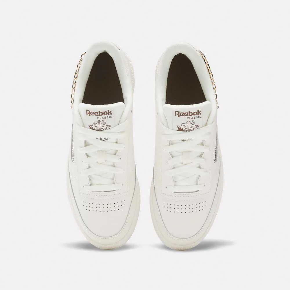 Кроссовки REEBOK Club C 85 в меловом/малиновом/золотистом цветах — стильный и удобный вариант для женщин, которые ищут универсальные кроссовки. Классический силуэт с низким вырезом создаёт элегантный образ. Верх из мелово-белой кожи дополнен деталями из красного дерева и золотистого металла для дополнительной визуальной привлекательности. Эти кроссовки также оснащены амортизирующей стелькой и прочной резиновой подошвой для комфорта и поддержки в течение всего дня. Независимо от того, занимаетесь ли вы в спортзале или бегаете по делам, кроссовки REEBOK Club C 85 обеспечат вам отличный внешний вид и отличное самочувствие.